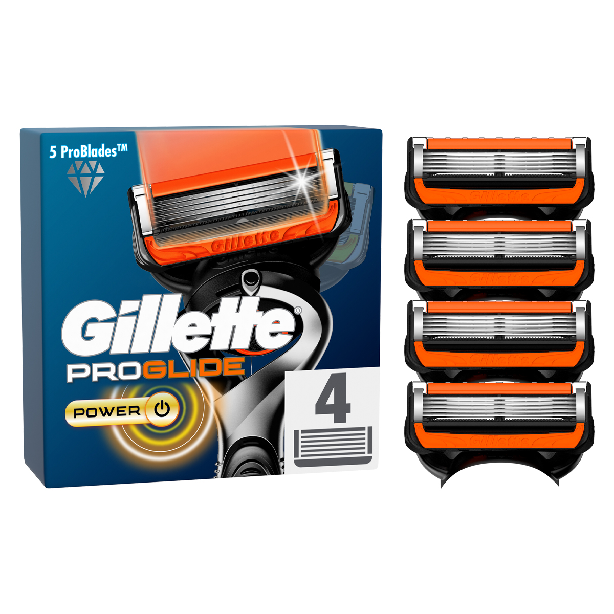 The Gillette® ProGlide Power replacement head gives you an unrivalled deep shave. The 5 sharp ProBlades™ blades with additional stabilization technology are optimally spaced for a comfortable shave. The larger lubricating strip (compared to Fusion5) after the blades as well as the large soft protector in combination with the reinforced lubricating strip before the blades enhance skin protection during shaving. It is equipped with a precision blade on the back of the head for shaping contours in hard-to-reach areas. Worried that its handle won't fit with the replacement heads? All Proglide replacement heads fit all Proglide, Fusion5, Skinguard handles and a replacement ProGlide can last up to a month.