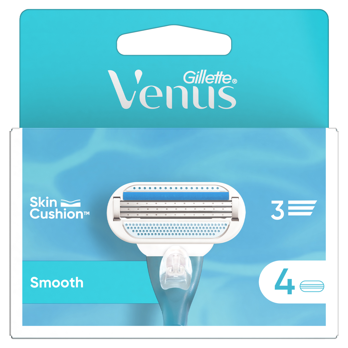 The Gillette® Venus Smooth replacement head gives a deep shave to sensitive skin. It features 3 blades that last up to 30 days* and are surrounded by soft protectors that prepare the skin for a quick and easy shave. Also the new lubricating film before the blades with SkinCushion™ technology gives up to 50% more protection of the skin from shaving irritations **. It also features a fading blue line so you know when to change your shaving head. All Venus replacement heads fit all Venus shaver handles. The packaging is fully recyclable made from a minimum of 40% recycled materials. It also features FSC certification.*based on 2 shaves per week**after one month compared to the lubricating strips without SkinCushion™