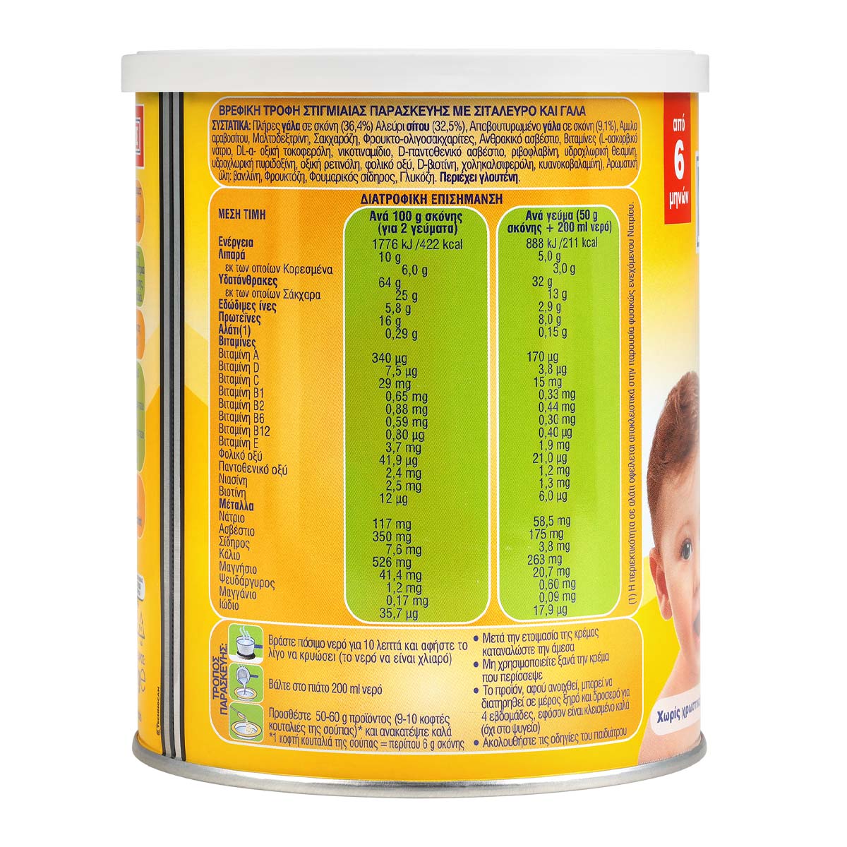 It is suitable for your baby from the 6th month. It is particularly tasty and nutritious for...strong children from the crib! They contain 30% less sugar than other similar creams. They contain no colourings and preservatives. They contain Vitamins and Iron. They are enriched with Ca and vitamins B1 and D. Calcium and vitamin D contribute to the healthy development of the child's bones. Vitamin D together with Iron contribute to the normal functioning of the child's immune system. Iron contributes to the normal cognitive development of the child.