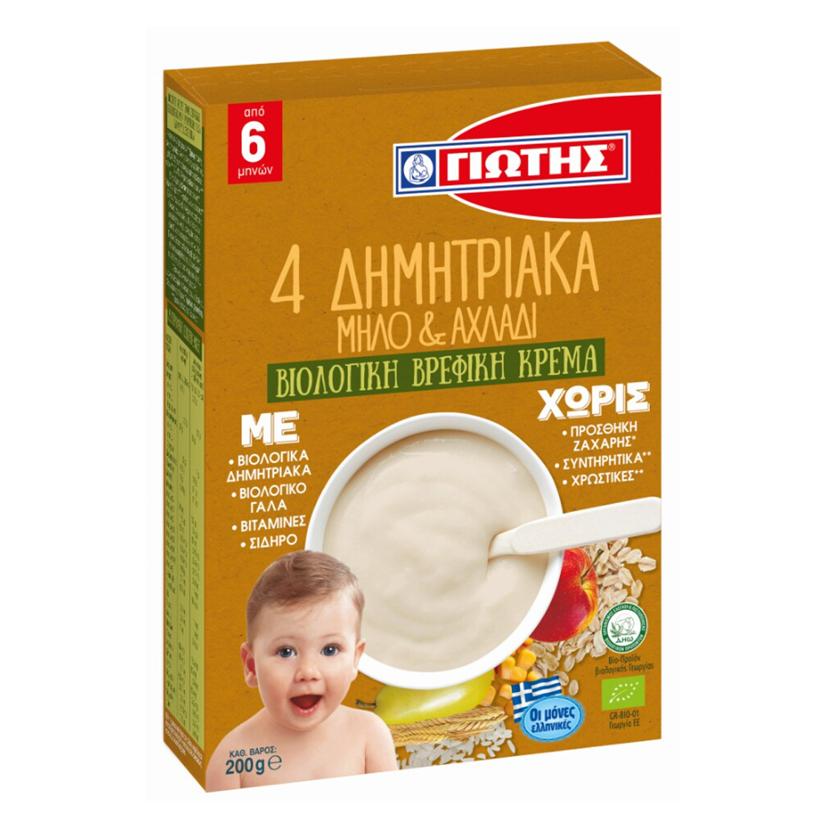Jotis Baby Cream With 4 Cereals Apple & Pear 6+ Months Organic 200 gr