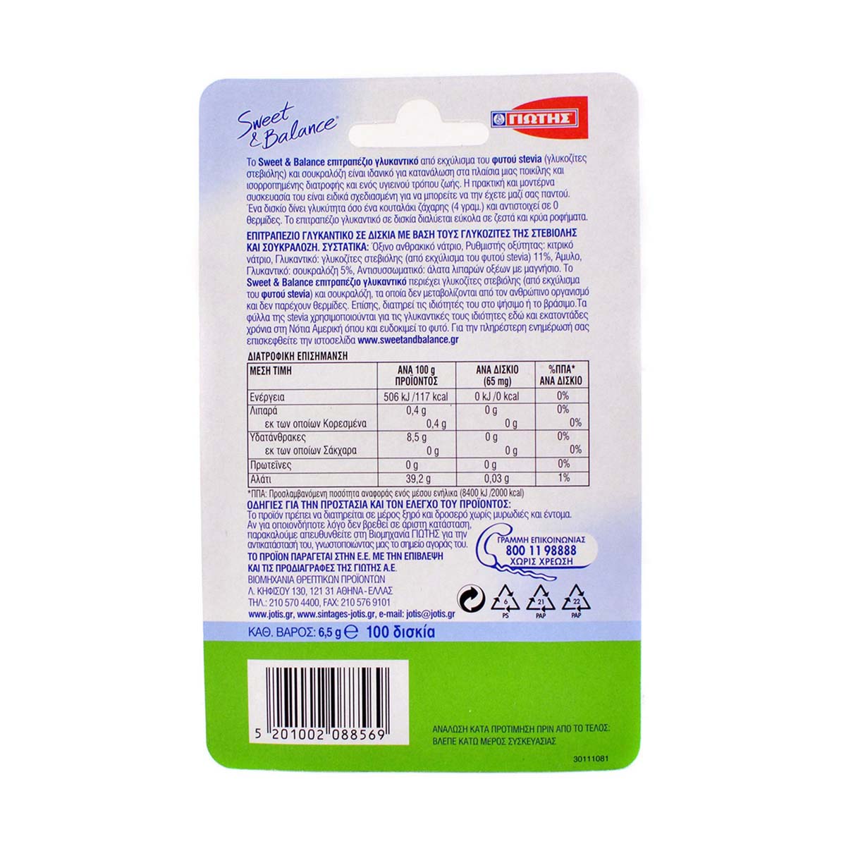 Sweet & Balance tablets, like the entire Sweet & Balance range of sweeteners, contain stevia plant extract (steviol glycosides) that are not metabolized by the human body and do not provide calories. You can use them in hot or cold drinks such as coffee or tea, wherever you find yourself because you can always have them with you.