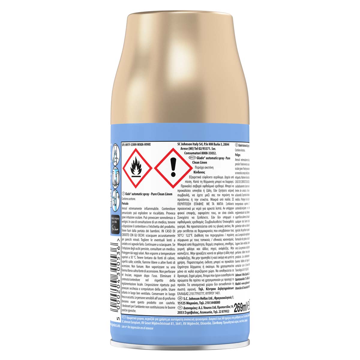 Το Glade® Automatic Spray προσφέρει υπέροχο άρωμα τη μια εβδομάδα μετά την άλλη, αυτόματα. Με 2 τρόπους ψεκασμού: 1. Ρύθμιση χρονοδιακόπτη 2. Κουμπί extra ψεκασμού. PURE CLEAN LINEN: Χαλαρώστε και απολαύστε μια αίσθηση καθαριότητας σαν τα φρεσκοπλυμένα σας σεντόνια.
