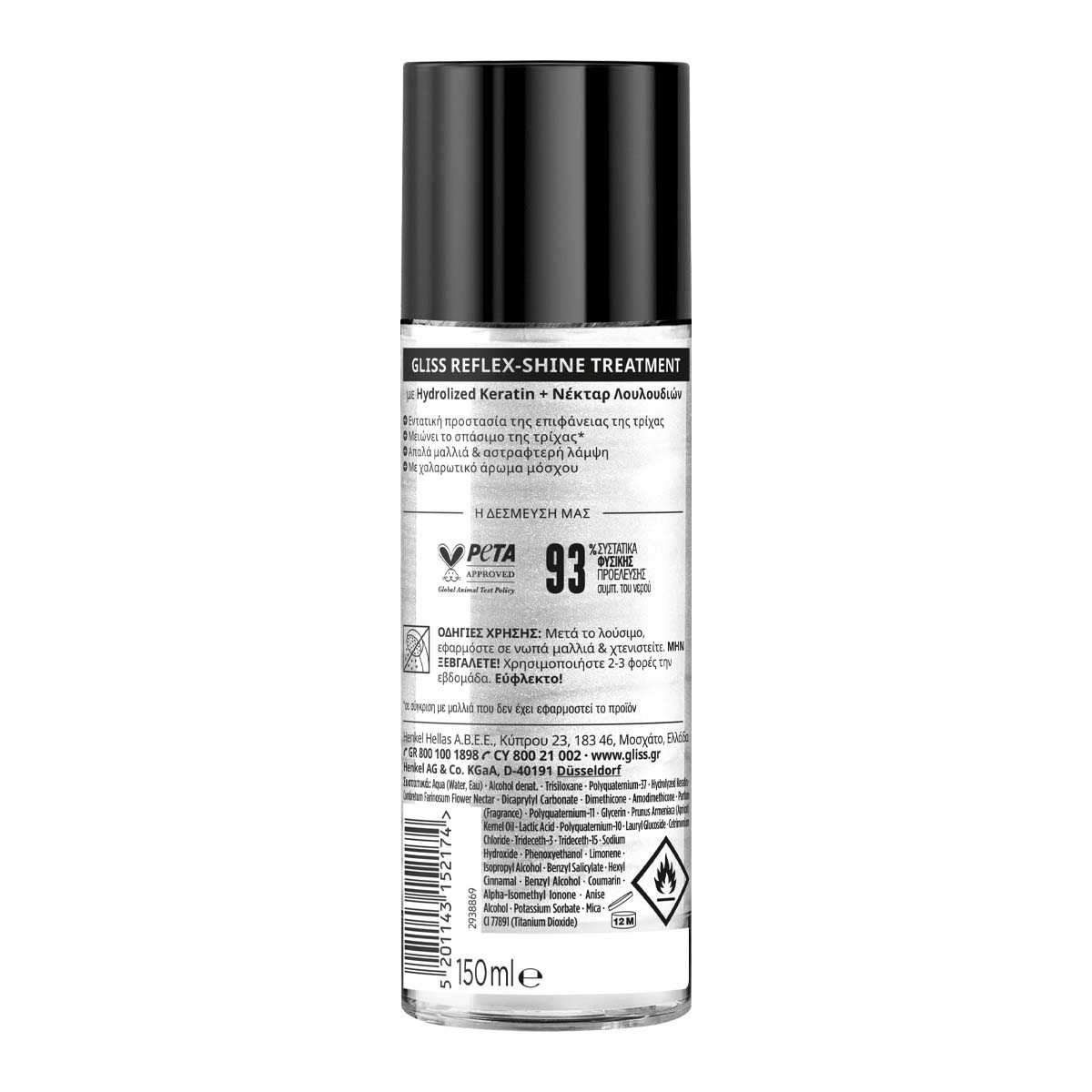 Schwarzkopf Gliss Reflex Shine 150ml - Instantly shine, deep repair, for dry and damaged hair. Gliss Shine & Repair Hair Cream that combines liquid keratin and flower nectar to provide intensive protection to the hair surface. It deeply repairs hair and reduces hair breakage, while leaving hair smooth and with a glossy shine. With a relaxing musky fragrance. 93% of the ingredients are of natural origin. Gliss hair products are PETA approved. Gliss Care Level: 3 - Intensive care, with repair formulas and high performance ingredients.