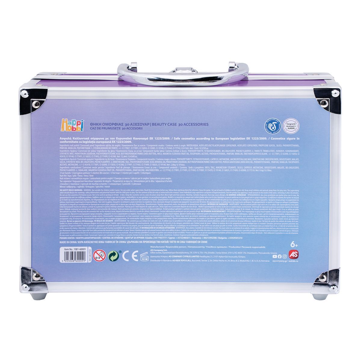 Δημιούργησε το δικό σου μοναδικό beauty look, πειραματίσου με χρώματα και ατέλειωτη φαντασία. Τα παιδικά καλλυντικά HappiHobbi, έχουν ελεγχθεί ως προς την ασφάλειά τους σύμφωνα με τις ισχύουσες ευρωπαϊκές προδιαγραφές και προσφέρουν μια ασφαλή και δημιουργική εμπειρία παιχνιδιού. Γιατί κάθε παιδί γεννήθηκε για να λάμπει με τον πιο χαρούμενο και δημιουργικό τρόπο!