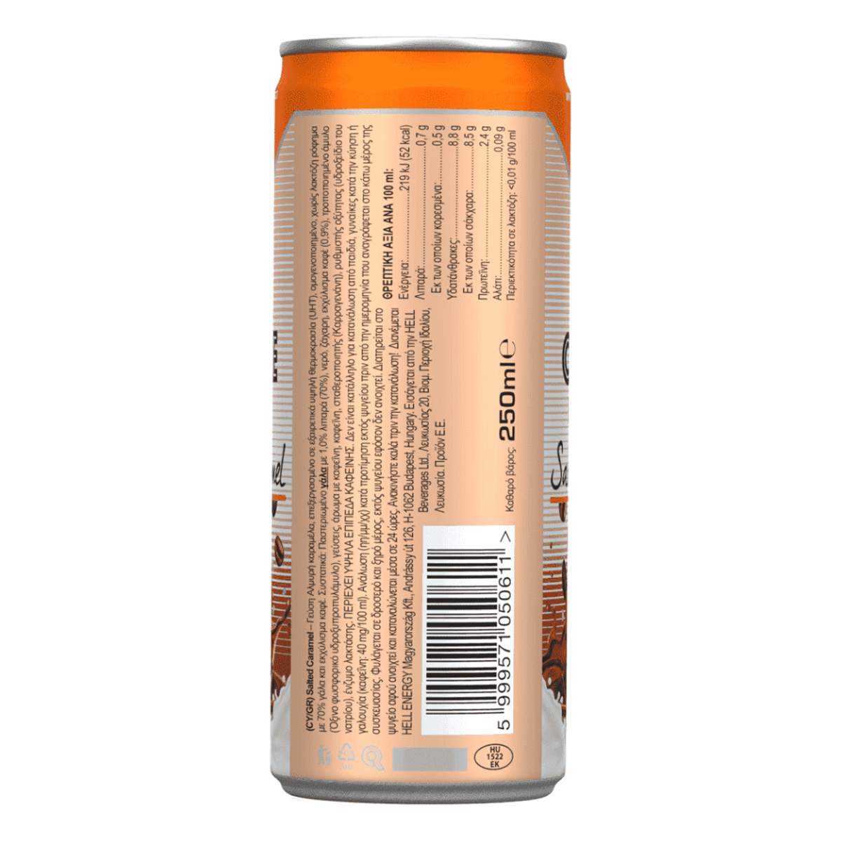 HELL ENERGY has created this Salted Caramel flavoured drink for true coffee lovers, with real Arabica and Robusta coffee extract and high coffee content. It is also lactose-free and contains no preservatives or artificial colours. Thanks to its small and elegant packaging, you can enjoy it at home or on the go, both cold and hot.