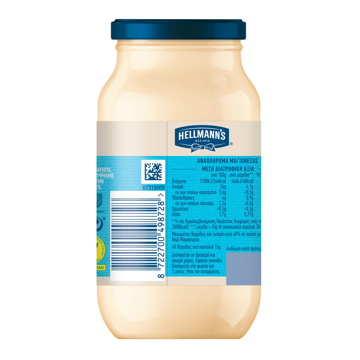 Hellmann's Light 450 ml contains less than half the calories and fat of real Mayonnaise and only 41 calories per spoonful. But you'll never know until you try it. For those who are watching their line, but don't want to deprive themselves of their favorite habits.