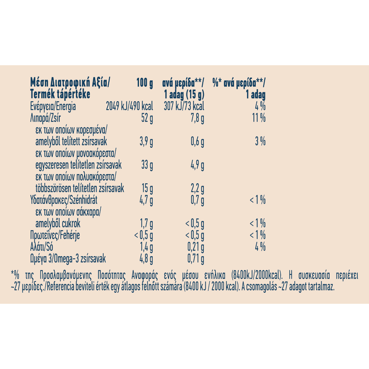 * DISCLAIMER: Chalkiadakis SA, always respecting its consumers, strives to provide reliable information on its website, based on the data it receives from its suppliers. However, Chalkiadakis SA informs that there may be discrepancies between the information provided and that on product labels, for technical reasons that may be due to stock updates. The information presented on the website does not in any way replace the information on the product labels, and in case of any discrepancy, the information on the product labels always prevails. Consumers must check the information on the labels before purchasing and before consuming the product and always consume it according to the intended use defined by the supplier. In case of disagreement, the consumer expressly waives any right of appeal against Chalkiadakis SA.