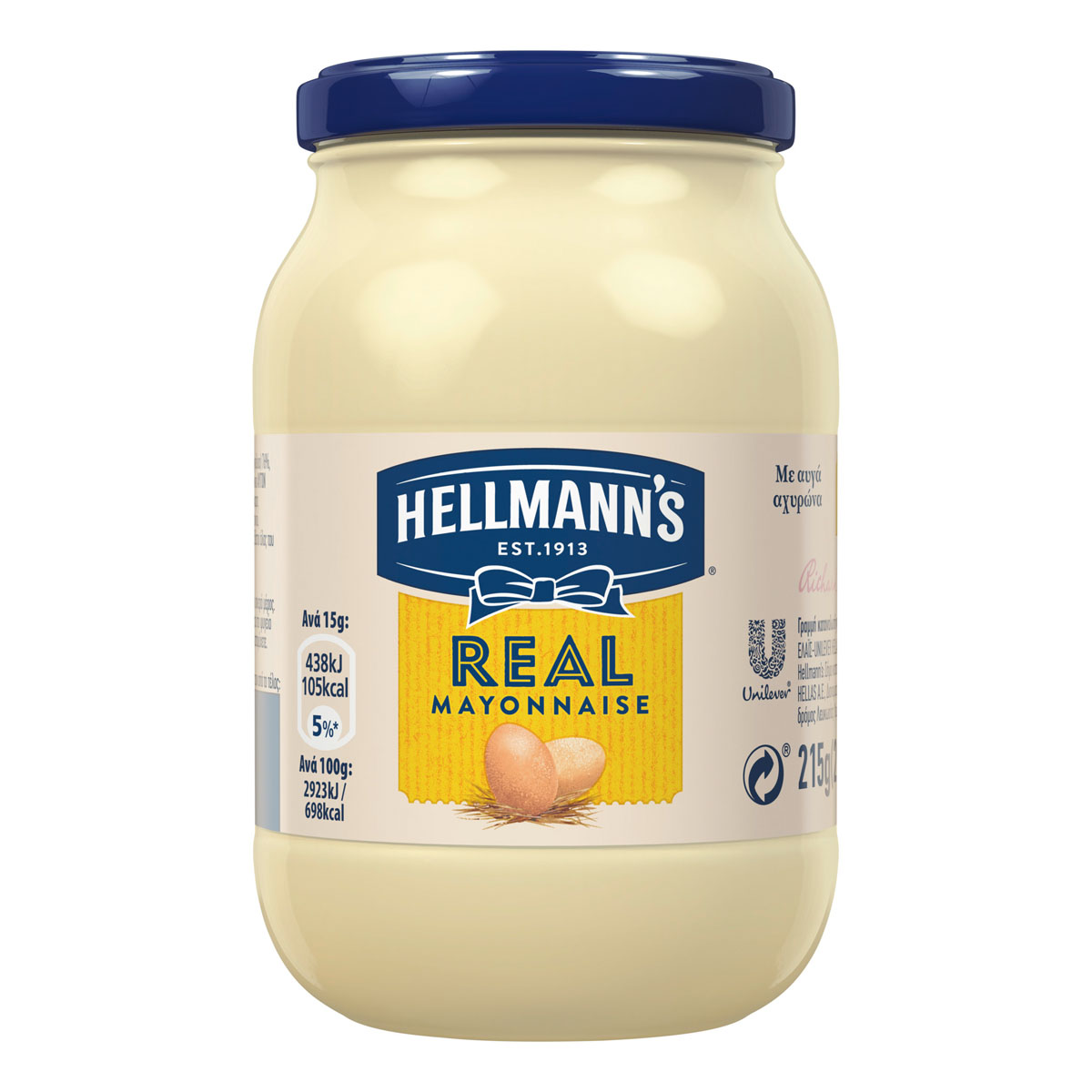 Hellmann's real mayonnaise 225 ml is the basic flavour in dishes such as salads made from fresh vegetables or cooked vegetables, toast, sandwiches, fish, seafood and meat. In a survey conducted in Greece in December 2011, Hellmann's real was voted the mayonnaise with the best taste!