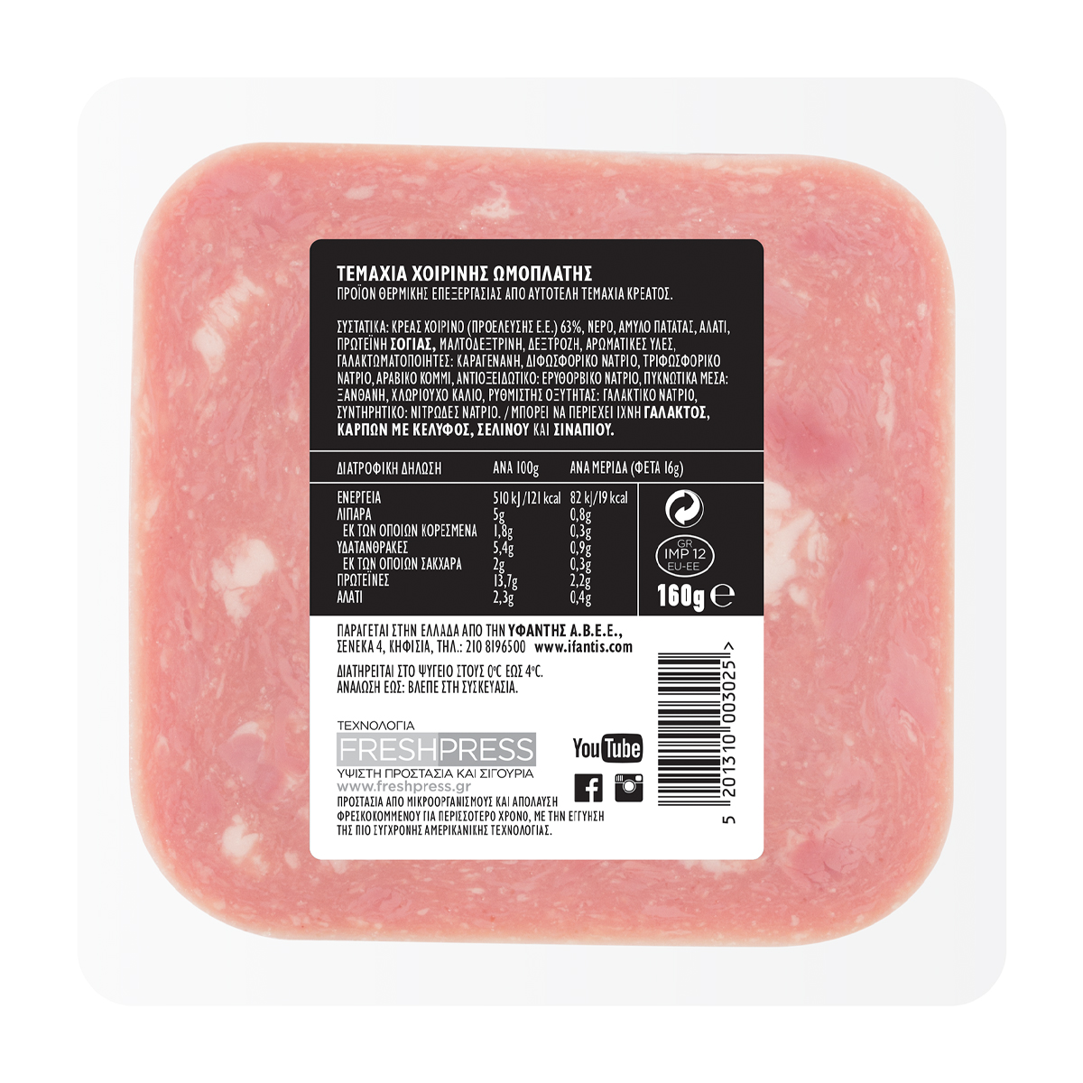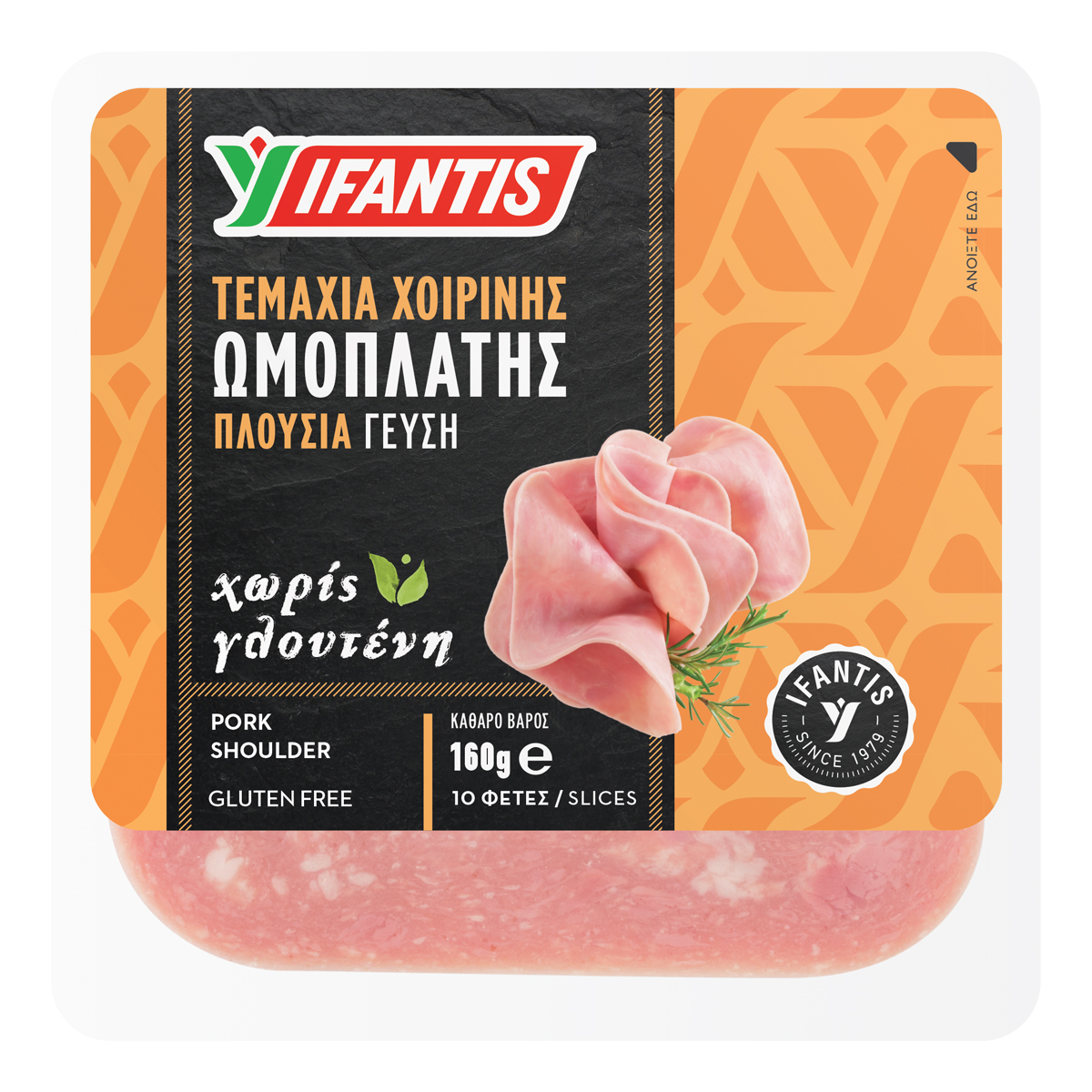 Made from fine pork. Rich taste, from pure, whole pieces of fine meat, from pork shoulder, with high protein content. Gluten-free. In economical packaging (-0,20€ cheaper) with 10 slices and the Ifantis quality guarantee.