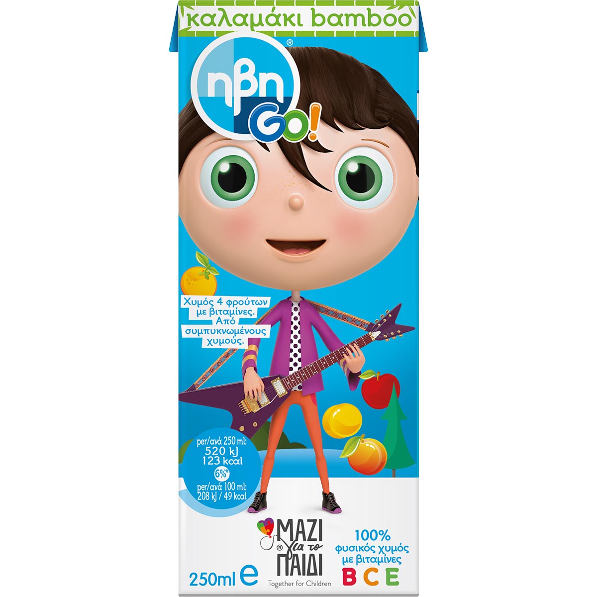 Juice of 4 fruits with vitamins. From partially concentrated juices. Full of nutrients, it gives children the strength they need every day. Ideal for consumption at school, on excursions and at home.