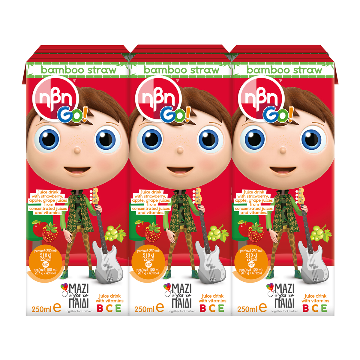 Fruit drink with strawberry, apple, grape juices from concentrated juices and vitamins. Full of nutrients, it gives children the strength they need every day. Ideal for consumption at school, on a field trip and at home.