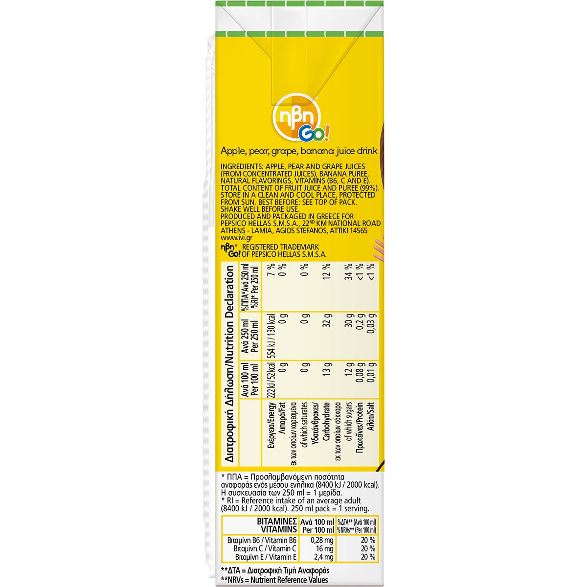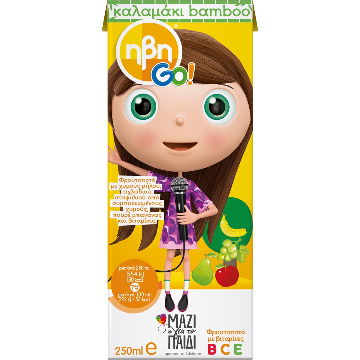 Fruit drink with apple, pear and grape juices from concentrated banana puree and vitamins. Full of nutrients, it gives children the strength they need every day. Ideal for consumption at school, on field trips and at home.