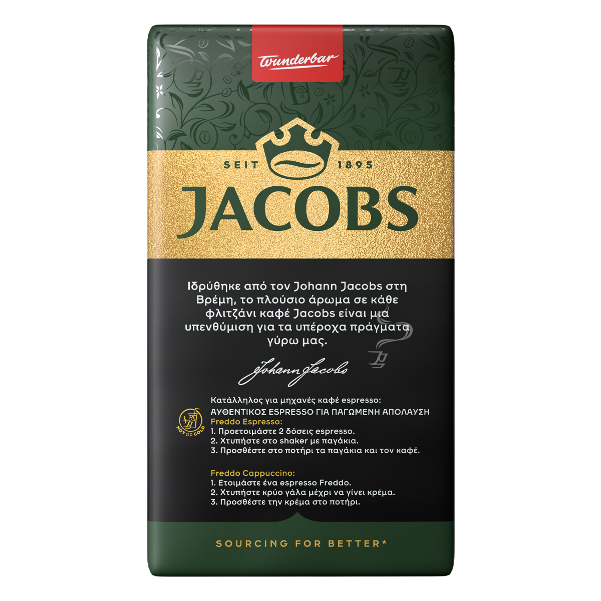 Coffee JACOBS Espresso Intenso specially selected blend for a strong taste experience. The ideal blend for the perfect Espresso or Freddo.