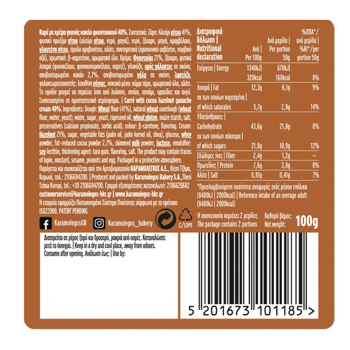 ΚΑΡΑΜΟΛΕΓΚΟΣ Α.Ε. Διεύθυνση Αρτοβιομηχανίας Καραμολέγκος Α.Ε. Θέση Τζήμα, Κορωπί – Τηλ.: +30 210 6694200 – Γραμμή εξυπηρέτησης καταναλωτή +30 210 6620682