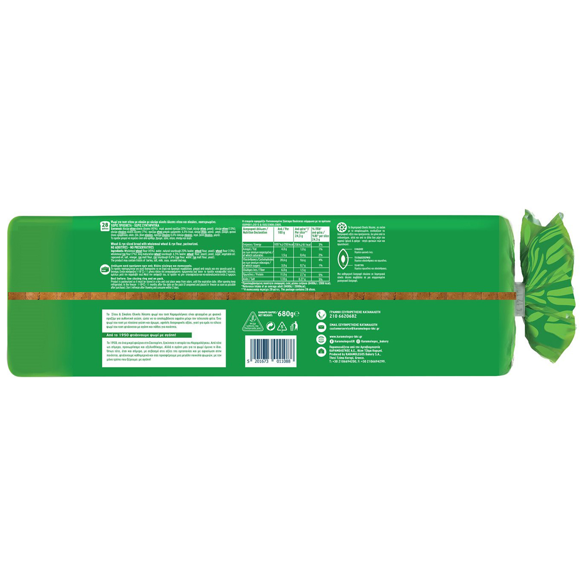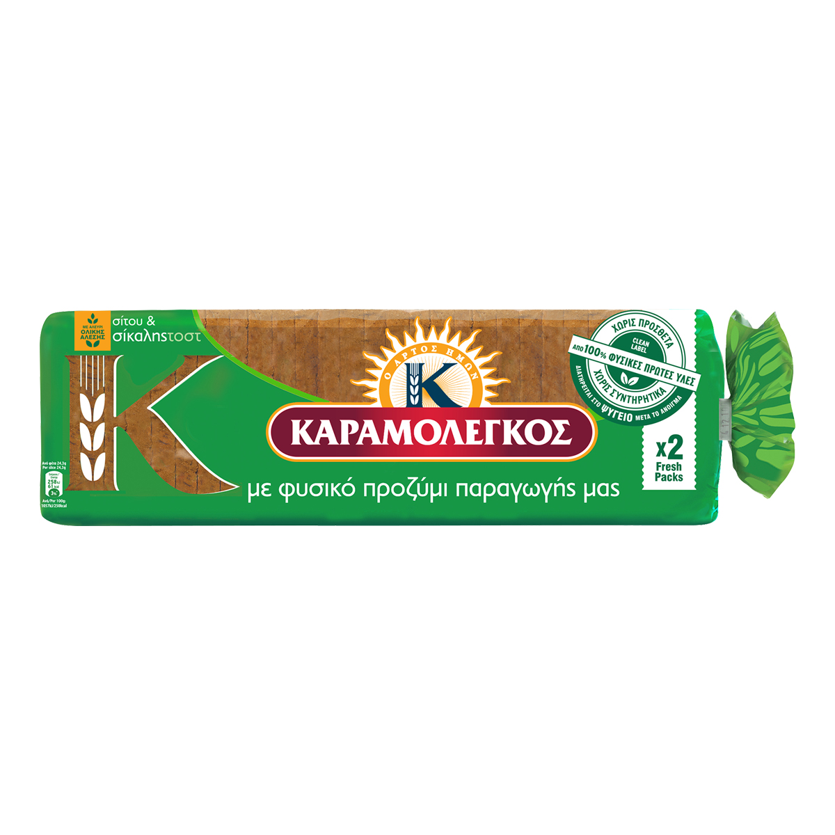Wheat and rye toast bread with whole wheat and rye flour, pasteurized.