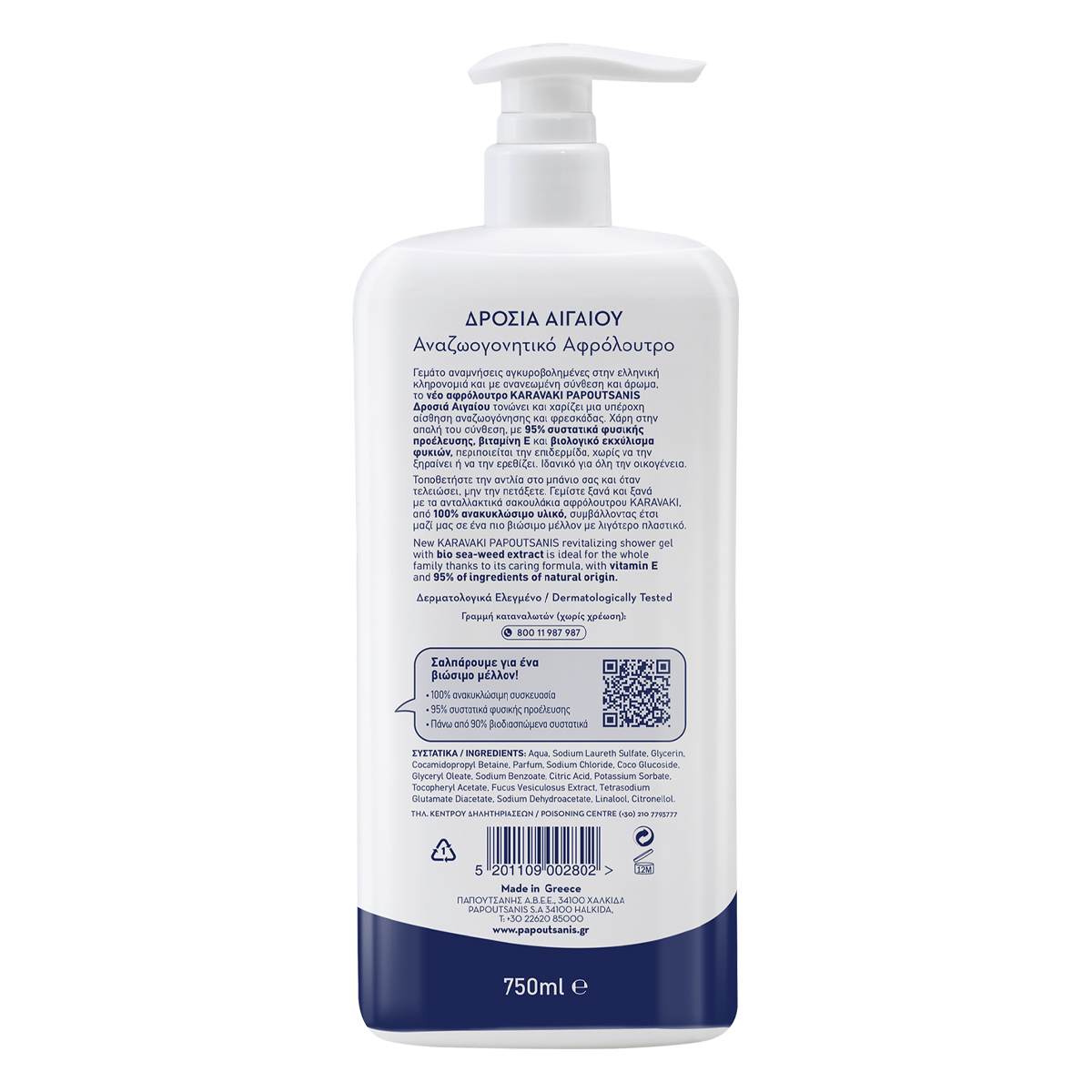 Full of memories anchored in the Greek heritage and with a renewed composition and fragrance, the new KARAVAKI PAPOUTSANIS Drosia Aegean bubble bath stimulates and gives a wonderful sense of rejuvenation and freshness. Thanks to its gentle composition, with 95% natural ingredients, vitamin E and organic seaweed extract, it cares for the skin without drying or irritating it. Ideal for the whole family.