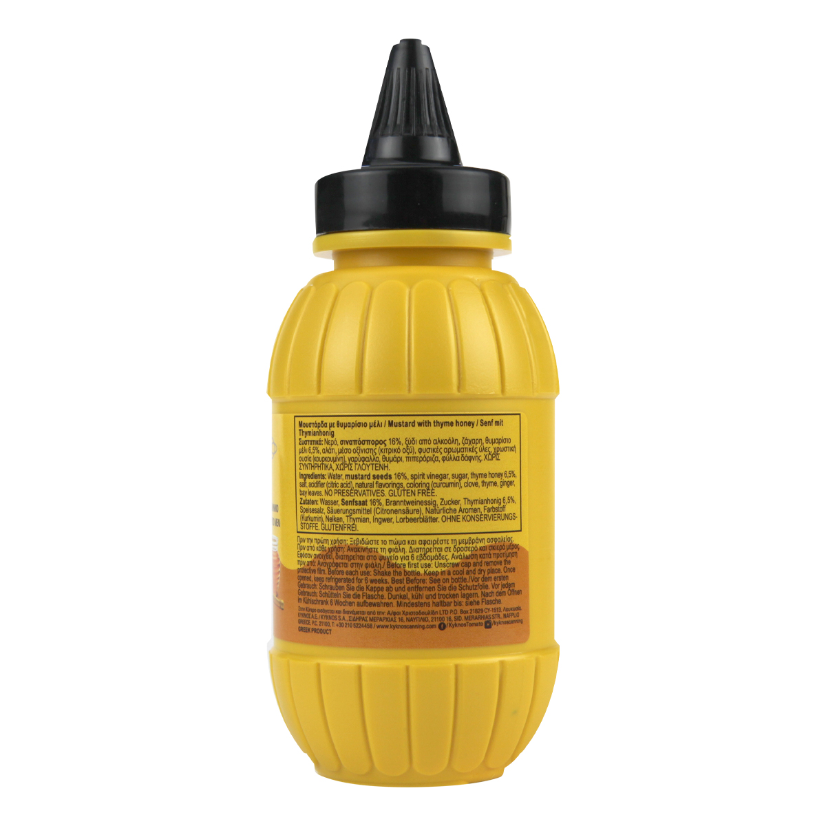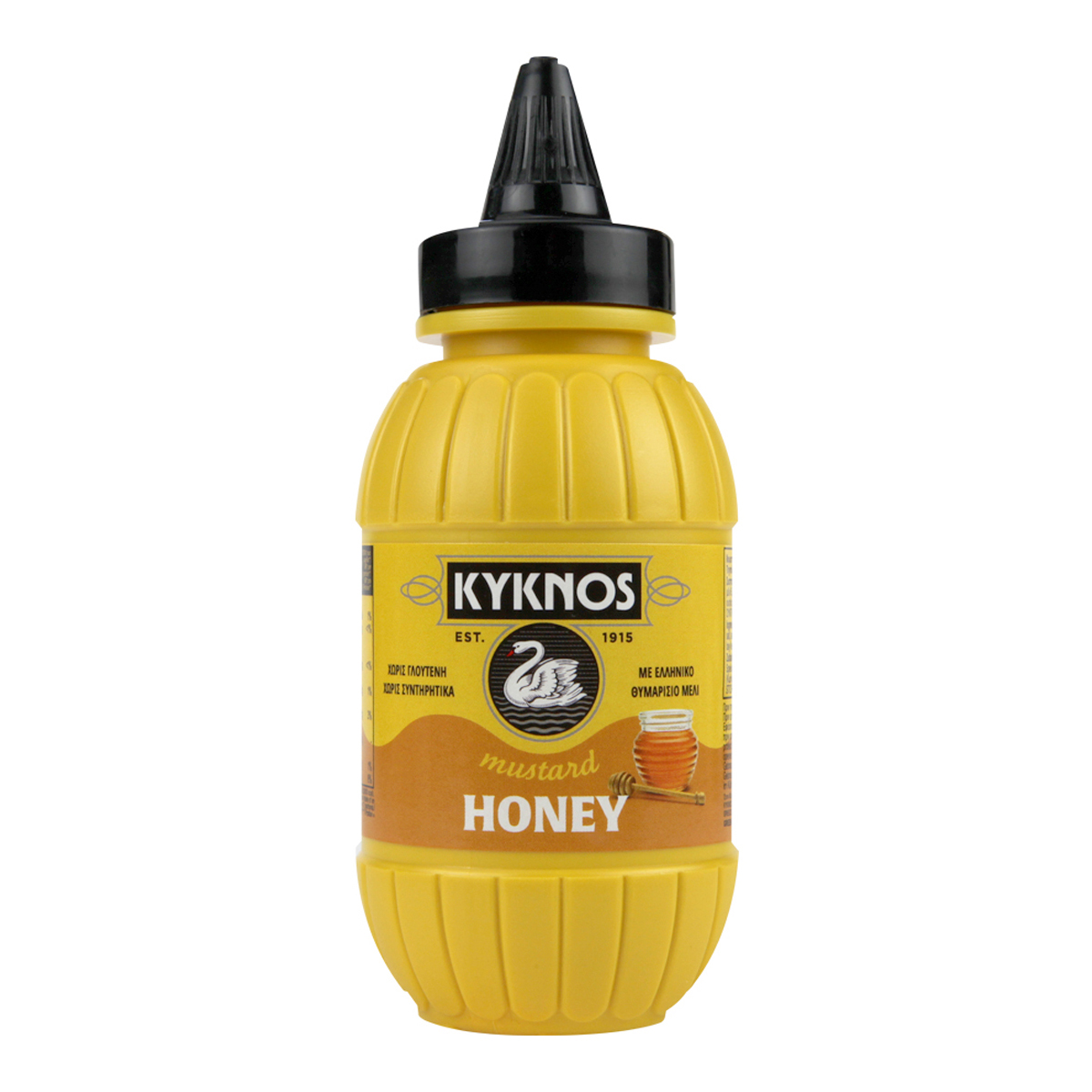 KYKNOS signature honey mustard is produced in Greece from fine mustard seeds and Greek thyme honey. A mustard that harmoniously combines the sweetness of honey with the spiciness of mustard. It transforms indifferent dishes into special delicacies. Traditionally used in barbecues, hot dogs and burgers & pairs wonderfully with meats, smoked fish and seafood, and adds a distinct, unique flavor to your marinades and sauces. KYKNOS honey mustard is preservative-free, gluten-free and made with Greek thyme honey.