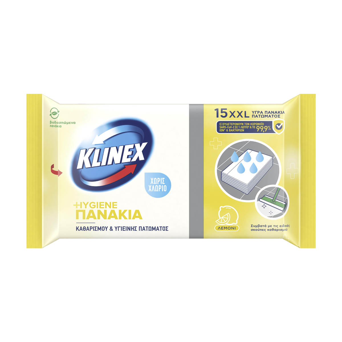Klinex Hygiene XXL biodegradable wet wipes are ideal for the hygienic cleaning & disinfection of the floors of the house. With a composition rich in cleaning agents, they remove dirt from the floor, quickly and easily, leaving a scent of cleanliness. They act against bacteria, established viruses and the flu virus.