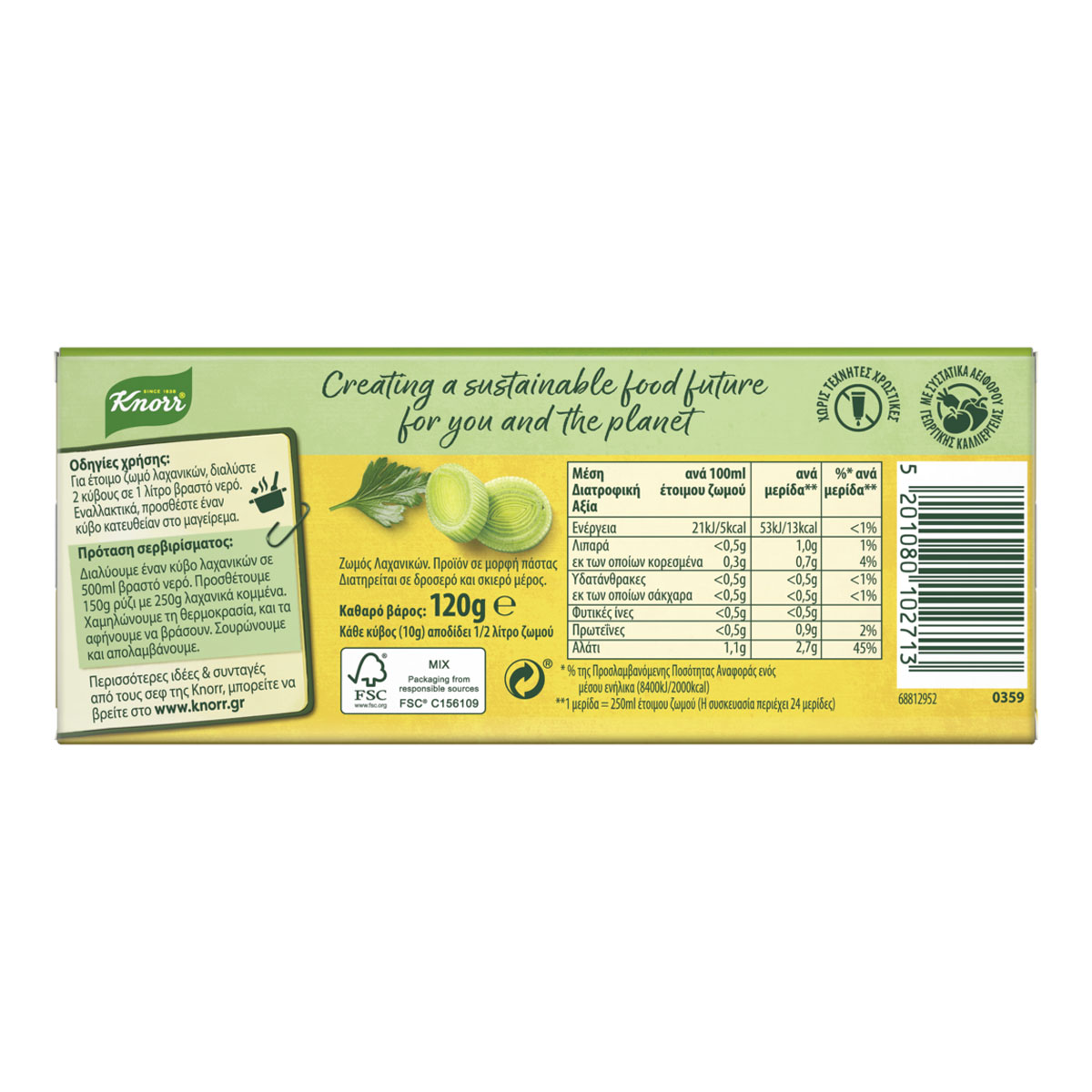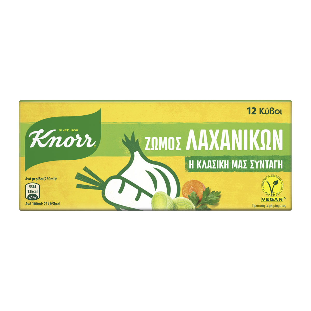 Knorr Classic Cubes are inspired by the needs of Greek cuisine and accompany all your favorite dishes. The Vegetable Cube gives rich flavor to all your recipes and goes perfectly with oily dishes, soups and sauces. The Knorr Vegetable Cube is made from vegetables such as tomato, onion, leek and carrot, spices and herbs that give a rich taste.
