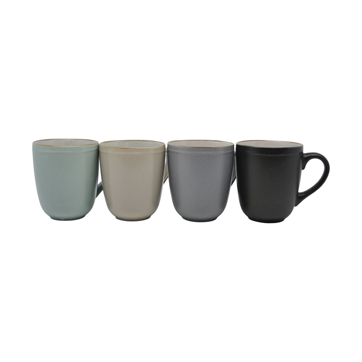 Κεραμική κούπα σε αποχρώσεις μέντας, μπεζ, γκρι και μαύρο, με λεπτή μπεζ μπορντούρα που χαρίζει διακριτική κομψότητα. Κατάλληλη για πλυντήριο πιάτων και φούρνο μικροκυμάτων. Η συσκευασία περιλαμβάνει και τα τέσσερα χρώματα.