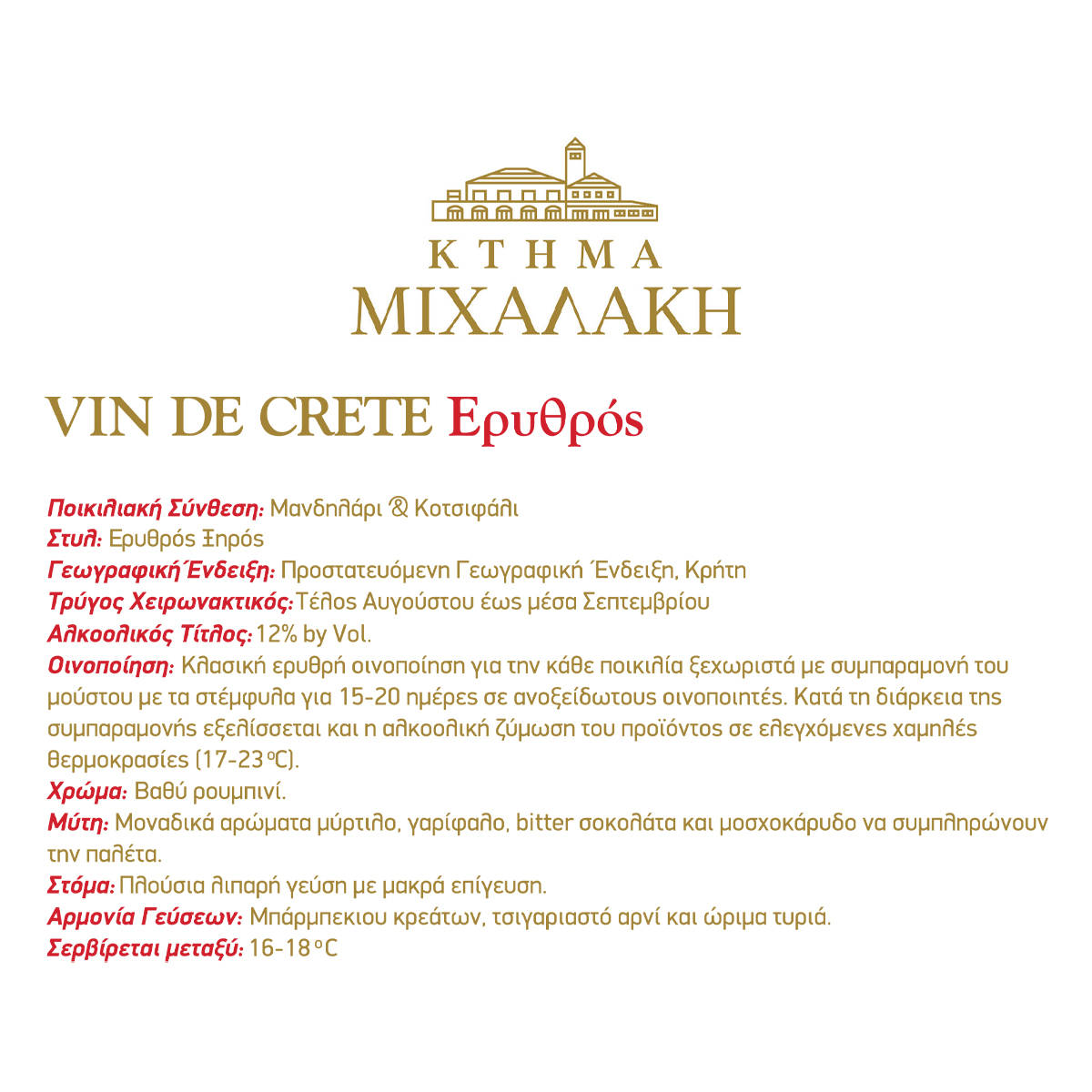 Kritikos Vin De Crete Red Wine Red Dry 750 ml