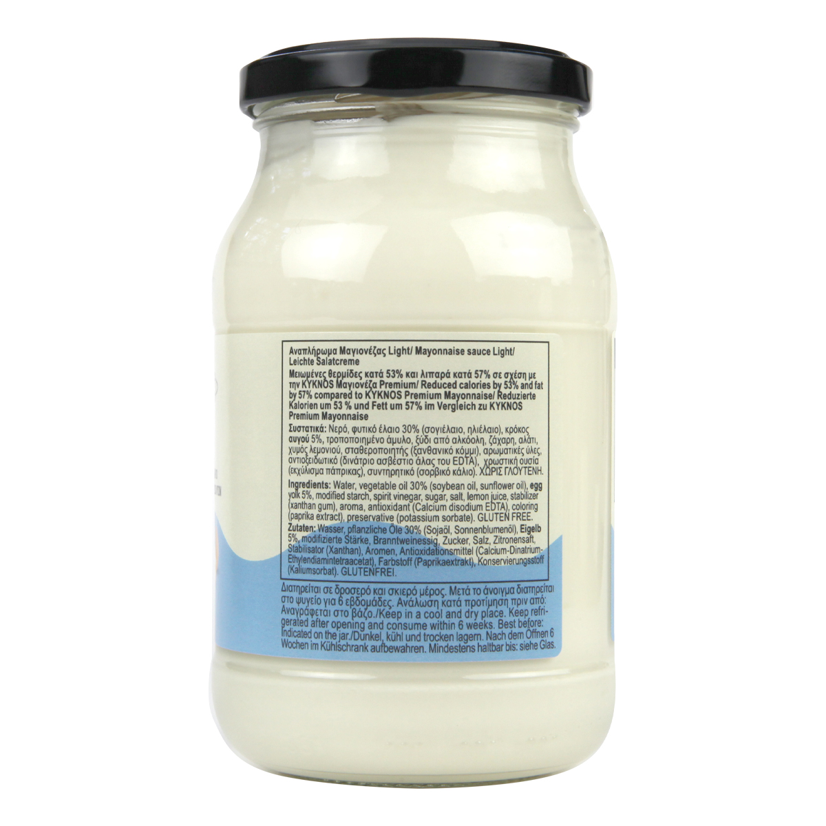 KYKNOS Light 400g is with ~60% less fat than KYKNOS Premium Mayonnaise and makes a difference in every spoonful. Irresistibly delicious and smooth, it's the perfect choice for those who are watching their line, but don't want to deprive themselves of their favorite habits. You can enjoy it in various kinds of salads, toast/sandwiches, club sandwiches, tacos & tortillas and even in cooking such as in recipes with fish, seafood, meat creating delectable dishes. Its delicious taste and uses will pamper connoisseurs of good mayonnaise. Gluten-free, made from Greek egg yolks, absolutely unique, characteristic taste of quality & branded Mayonnaise!