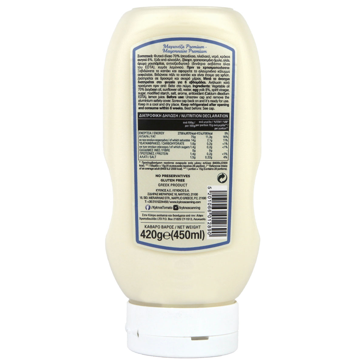 The rich, creamy taste and the quality ingredients of KYKNOS PREMIUM fully cover the need for a quality and branded mayonnaise! You can enjoy it in various kinds of salads, toast/sandwiches, club sandwiches, tacos & tortillas and even in cooking such as in recipes with fish, seafood, meat creating delicious dishes. Its delicious taste and uses will pamper connoisseurs of good Mayonnaise. Without preservatives & artificial colorants and without gluten, from Greek egg yolks, absolutely unique, characteristic taste of quality & branded Mayonnaise!
