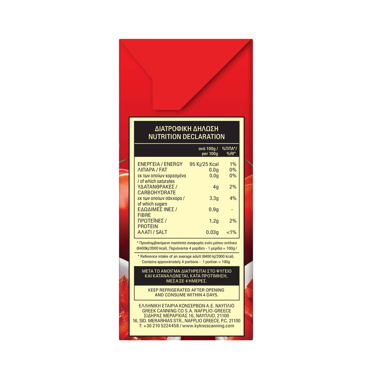 * DISCLAIMER: Chalkiadakis SA, always respecting its consumers, strives to provide reliable information on its website, based on the data it receives from its suppliers. However, Chalkiadakis SA informs that there may be discrepancies between the information provided and that on product labels, for technical reasons that may be due to stock updates. The information presented on the website does not in any way replace the information on the product labels, and in case of any discrepancy, the information on the product labels always prevails. Consumers must check the information on the labels before purchasing and before consuming the product and always consume it according to the intended use defined by the supplier. In case of disagreement, the consumer expressly waives any right of appeal against Chalkiadakis SA.