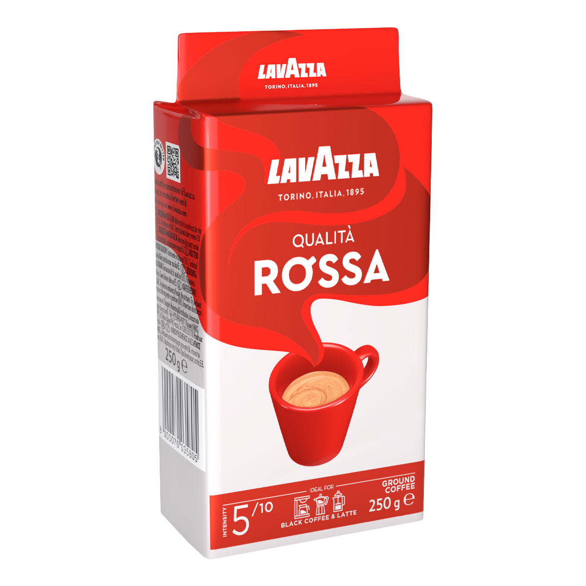 Qualita Rossa is the coffee that embodies the passion of a family-owned roasting company for over 120 years. A blend with a unique aroma and full body, rich and extremely harmonious, composed mainly of Brazilian Arabica and African Robusta. Qualita Rossa is the pleasure of a good coffee that has always been part of relaxing moments in Italian families. With a characteristic aroma that gives you a good mood and a desire to share pleasant moments.