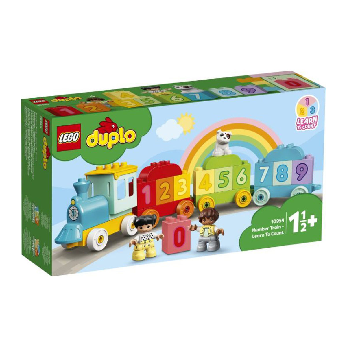 Get the colourful new version of the incredibly popular LEGO DUPLO Train with Numbers! Toddlers can load and unload the numbered blocks, line them up in the correct order and stack them to create a wall of numbers. A poster play surface makes construction fun. With moving wheels, an opening roof and friendly figures, the Number Train will transport your child into the world of imaginative developmental play!