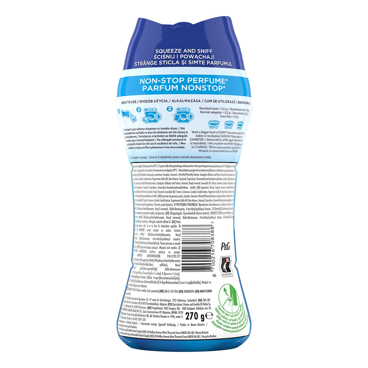 Adjust the intensity of the fragrance by filling the cap with the desired amount. Place the scented pearls directly in the washing machine bucket, before the laundry. Can be added to every wash, with all types of fabrics.
