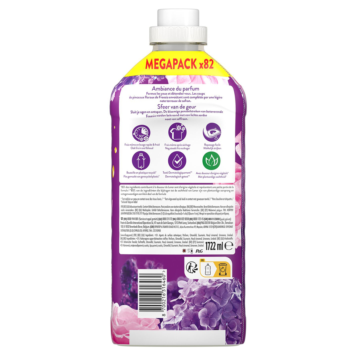 Lenor Floral Bouquet fabric softener offers 24-hour freshness and fragrance with notes of essential oils. The floral accents of enchanting freesia are completed with a light earthy saffron note.