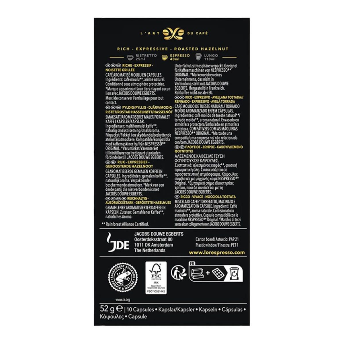 L'or Coffee Espresso Hazelnut In Capsules 10 x 5,2 gr