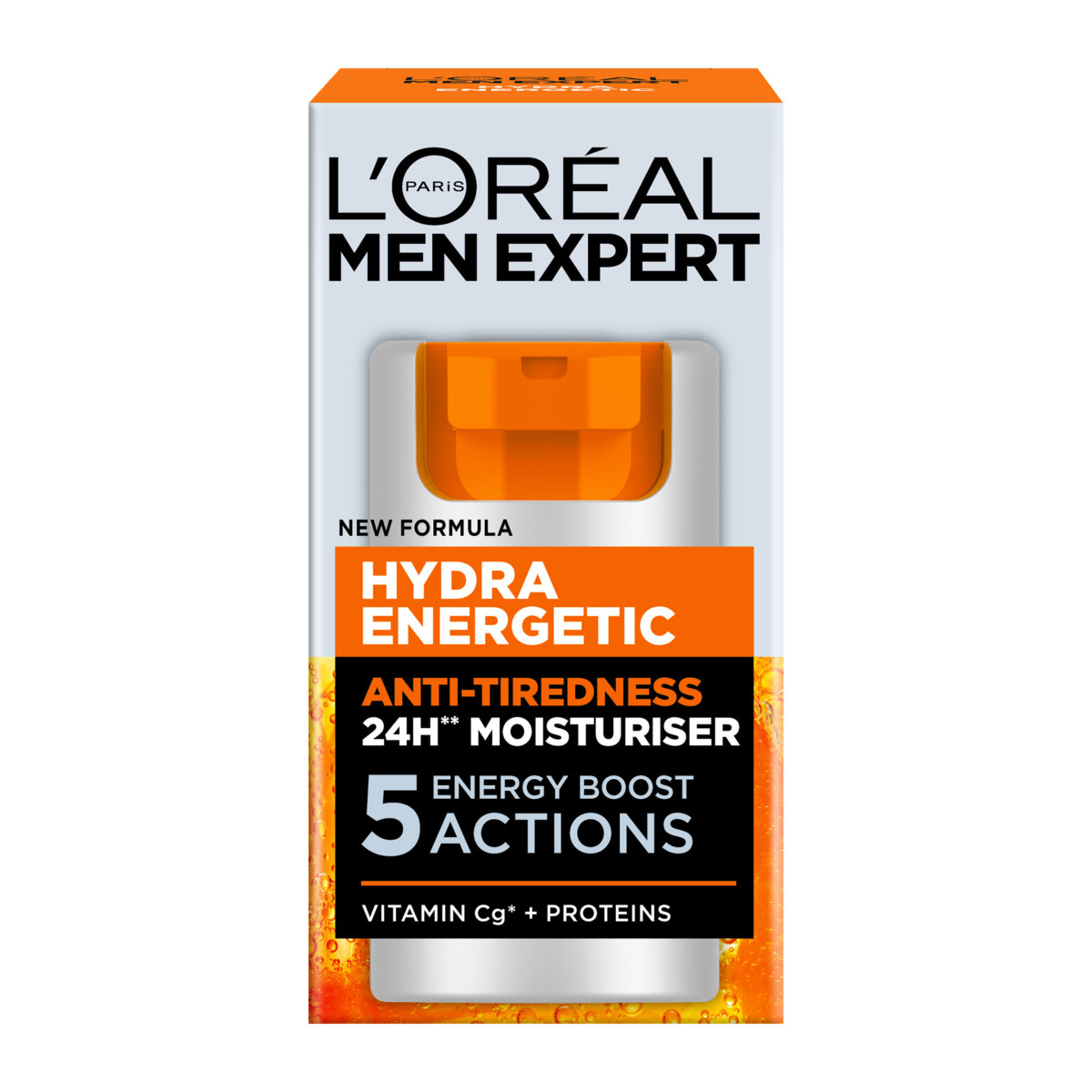 With the Hydra Energetic moisturizing face cream, specially designed for men's skin and enriched with vitamin C and proteins, you can activate your tired skin and immediately fight the 5 signs of fatigue. Dull appearance. Dark circles. Fine lines. Dryness. Lack of elasticity. It treats the 5 signs of fatigue during the day. 2.1.Dark circles. 3.Dark circles. 4.Dark circles. 5.Uneven texture. Enriched with vitamin C and Guarana (a natural source of caffeine).