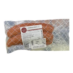 Meat: Pork 45%, mechanically separated poultry meat 45%, WHEAT protein, ABGO protein, seasonings, MUSTARD, yeast extract, carmine colouring, stabiliser: polyphosphates, sodium erythorbate, sugars, dextrose, flavour enhancer: sodium glutamate, preservative: sodium nitrite.allergens and traces of allergens are indicated in CAPS.
