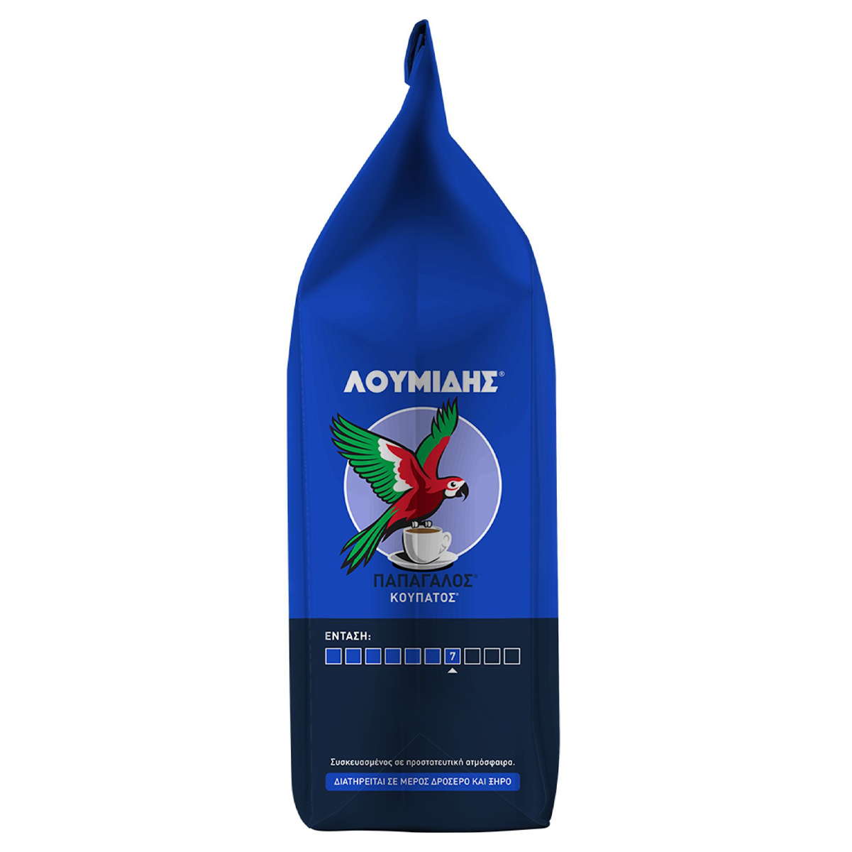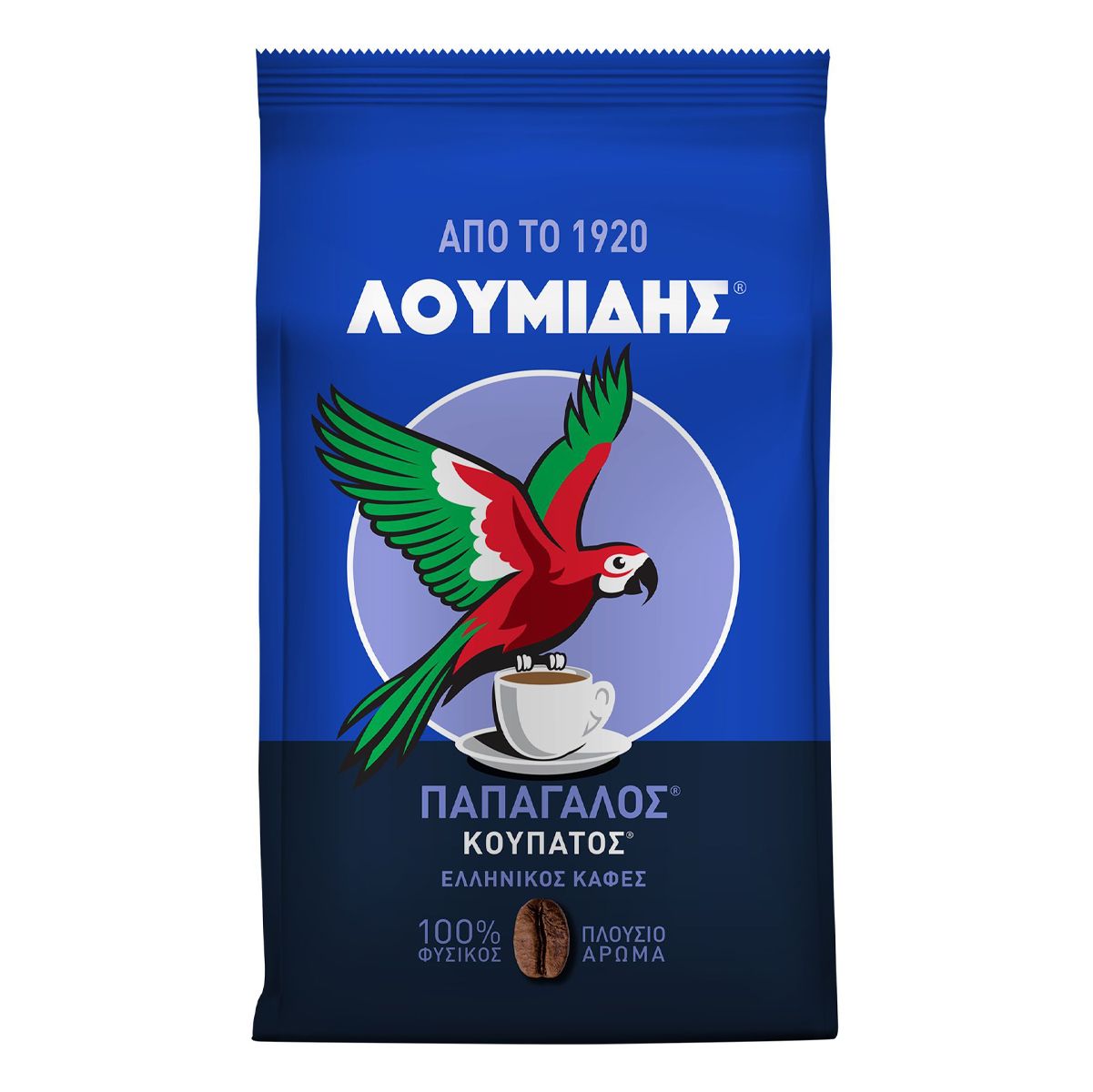 With LOUMIDIS® PAPAGALOS® Koupatos coffee you have a wonderful cup of Greek coffee that offers the whole group a great pleasure for hours! Loumidis Papagalos coffee takes care of the environment by using electricity from 100% renewable sources for its production. Ground coffee. 100% natural coffee.