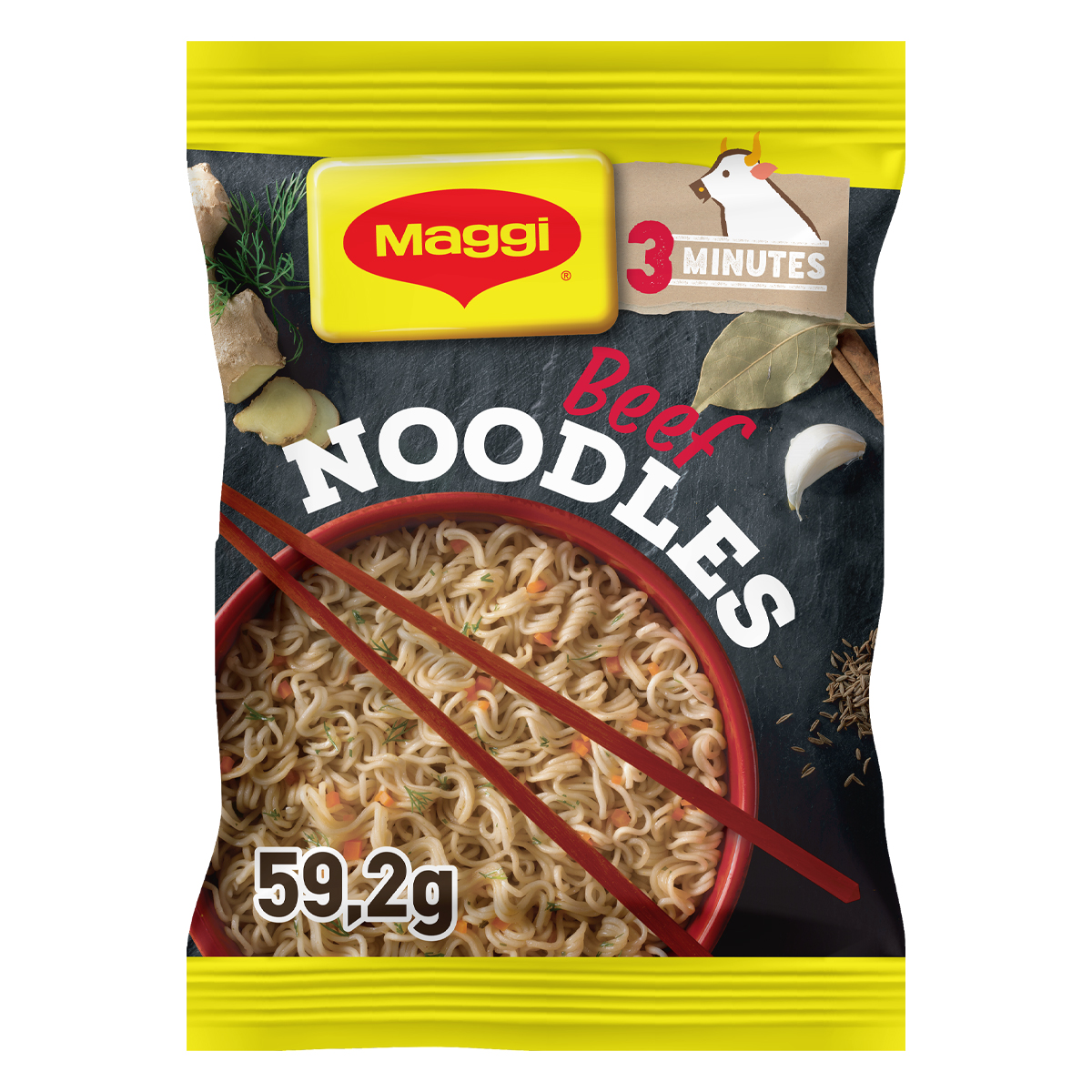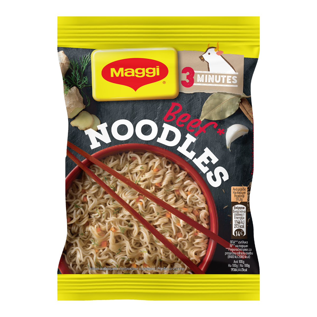 Instant pre-cooked meal with noodles and a mix of vegetables and spice powder with beef flavor. MAGGI brings Asian flavors to your plate in just 3 minutes! Enjoy MAGGI NOODLES with beef flavor, the perfect snack for all hours! A delicious and filling meal, consisting of noodles and a mixture of dried spices and vegetables. An easy and quick snack to prepare with very simple preparation instructions.