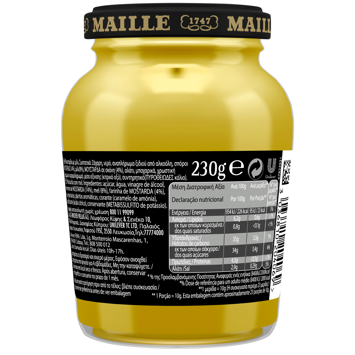 Maille honey mustard combines honey notes with a spicy character. A creamy body that harmoniously combines the sweetness of honey with the spiciness of Dijon mustard. Ideal for smoked fish, poultry, game and salads.