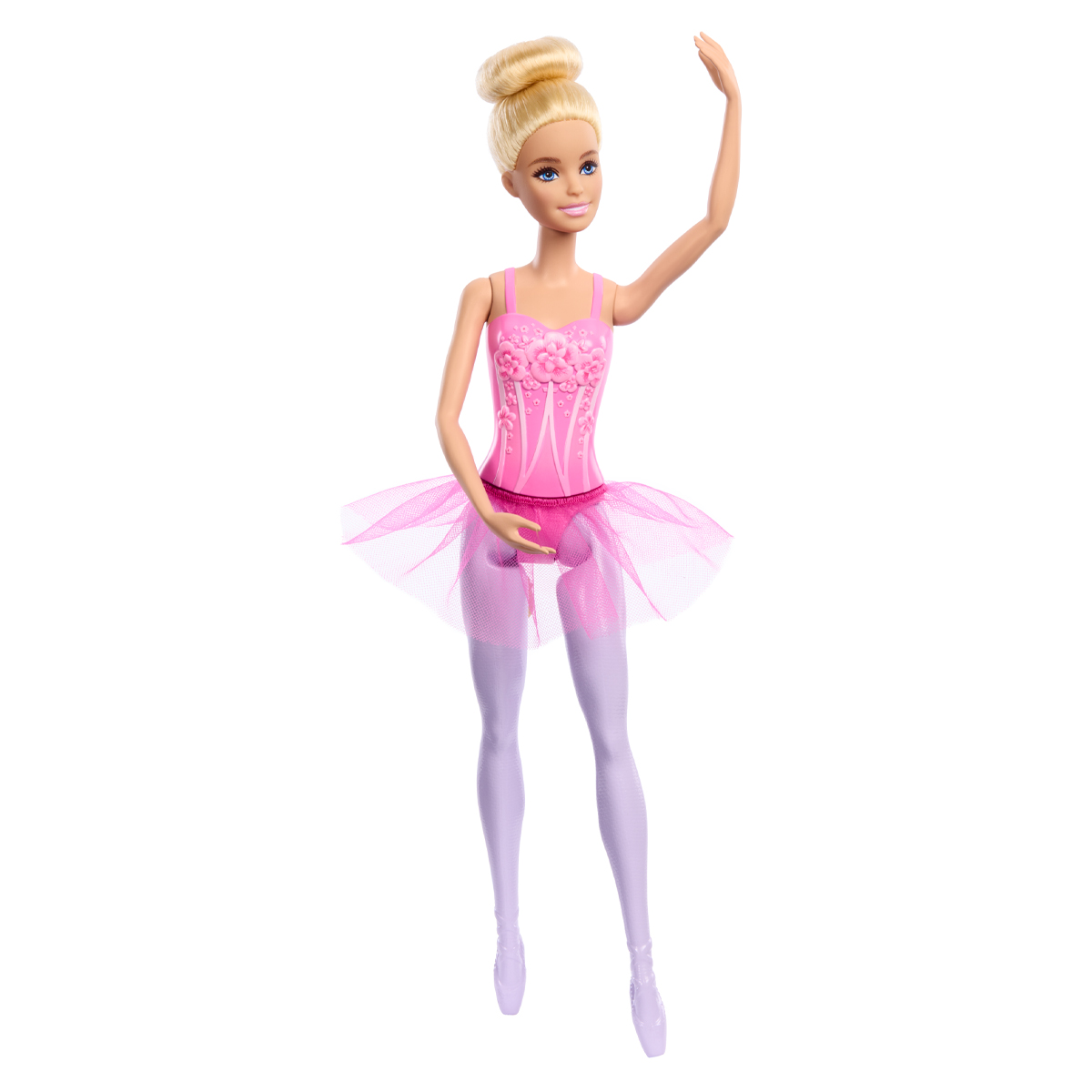 Get on stage with the Barbie Ballerinas! With a classic ballerina look, each doll wears a patterned bodysuit and removable ballerina skirt. The high ponytail completes their look. These ballerinas are ready to take the stage and steal the show! Children ages 3 and up can collect all ballerinas. Each doll is sold individually, subject to availability. The dolls cannot stand up on their own. Colors and designs may vary.
