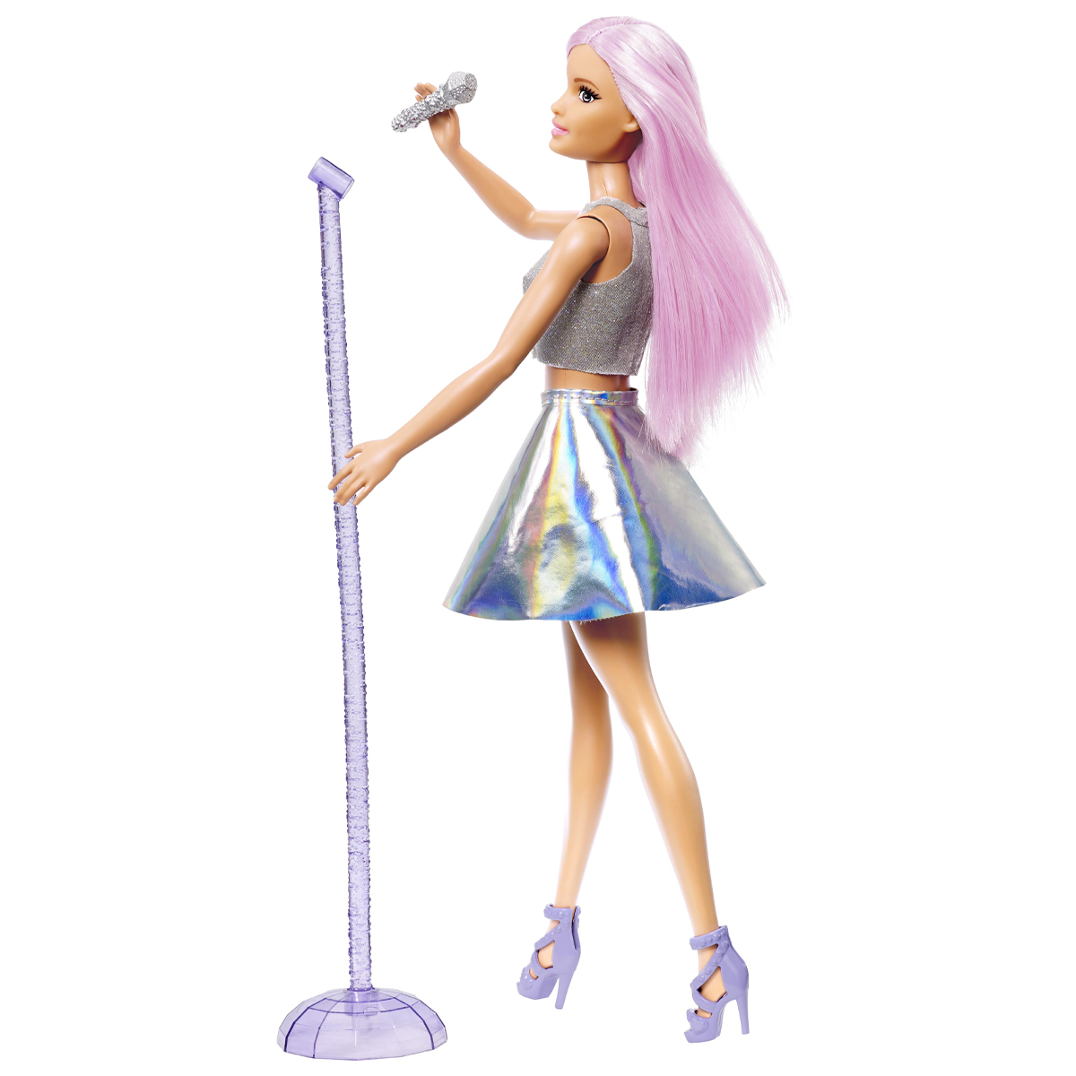 Barbie dolls Professions inspire the imagination and goals of children! Each doll wears the appropriate outfit and has accessories for many stories. There are so many professions to discover. Grab the microphone and sing along with Barbie pop star! With an appearance that will shine on stage and a microphone with a stand. Her long pink hair completes her stunning look! Discover all the Barbie Dolls and Barbie Professions toys, because when a child plays with Barbie, he imagines all the things he can become when he grows up (each sold separately and subject to availability). Includes pop star doll with clothes, shoes and microphone with stand. The doll cannot stand up on its own. Colors and designs may vary.