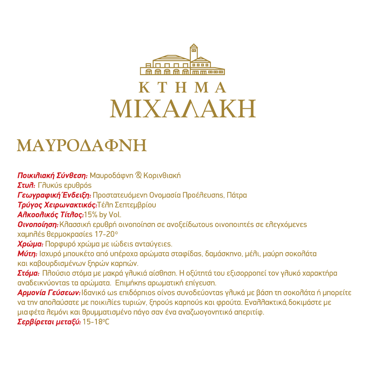 Sweet red wine powerful bouquet of wonderful aromas of raisin, plum, honey, dark chocolate and roasted nuts.