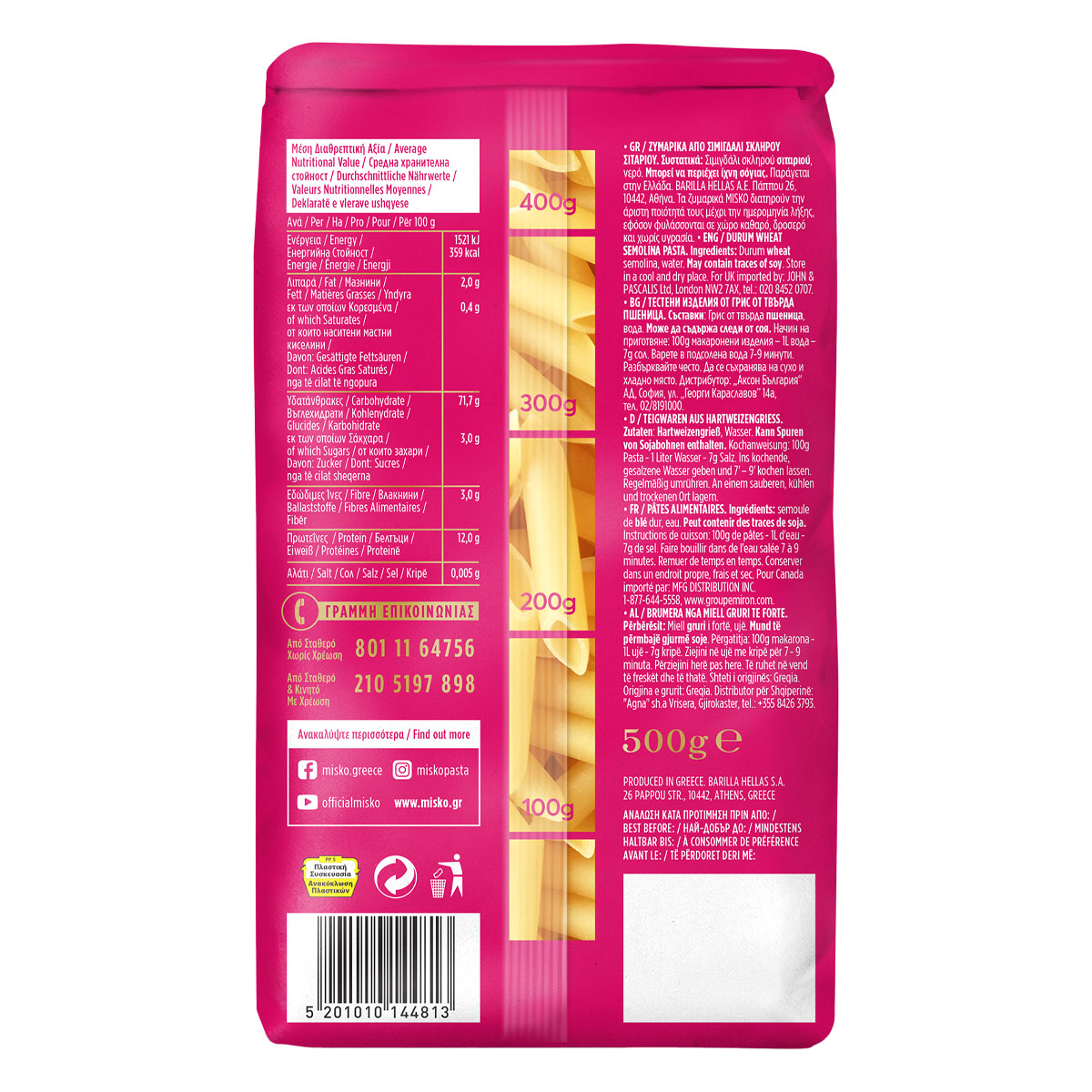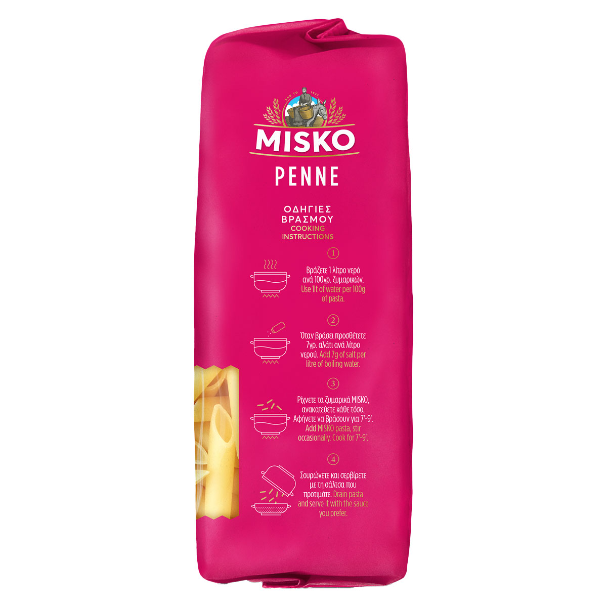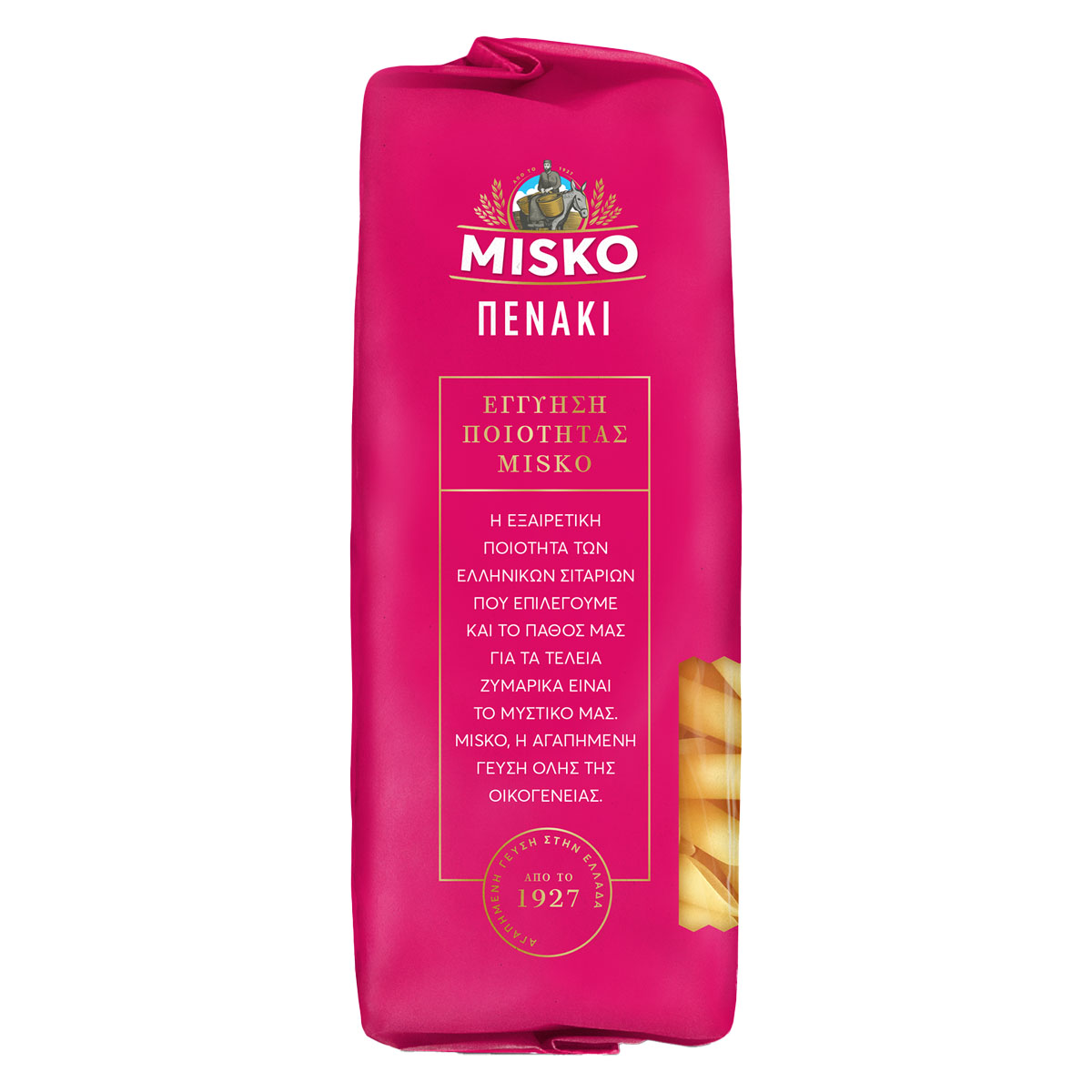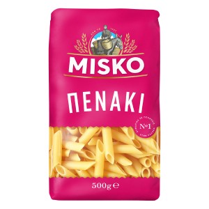 It is considered a classic in the family of short yeasts, resembling a writing pen and is characterised by its elongated shape and the oval hole inside. MISKO Penaki pasta is a weakness so widespread that it satisfies even the most demanding tastes! Plain, with cheese, with red or white sauces, with minced meat, with mushrooms, in the oven in soufflé and au gratin recipes or in pastitsio, it is undoubtedly a weakness that ... is worth succumbing to!
