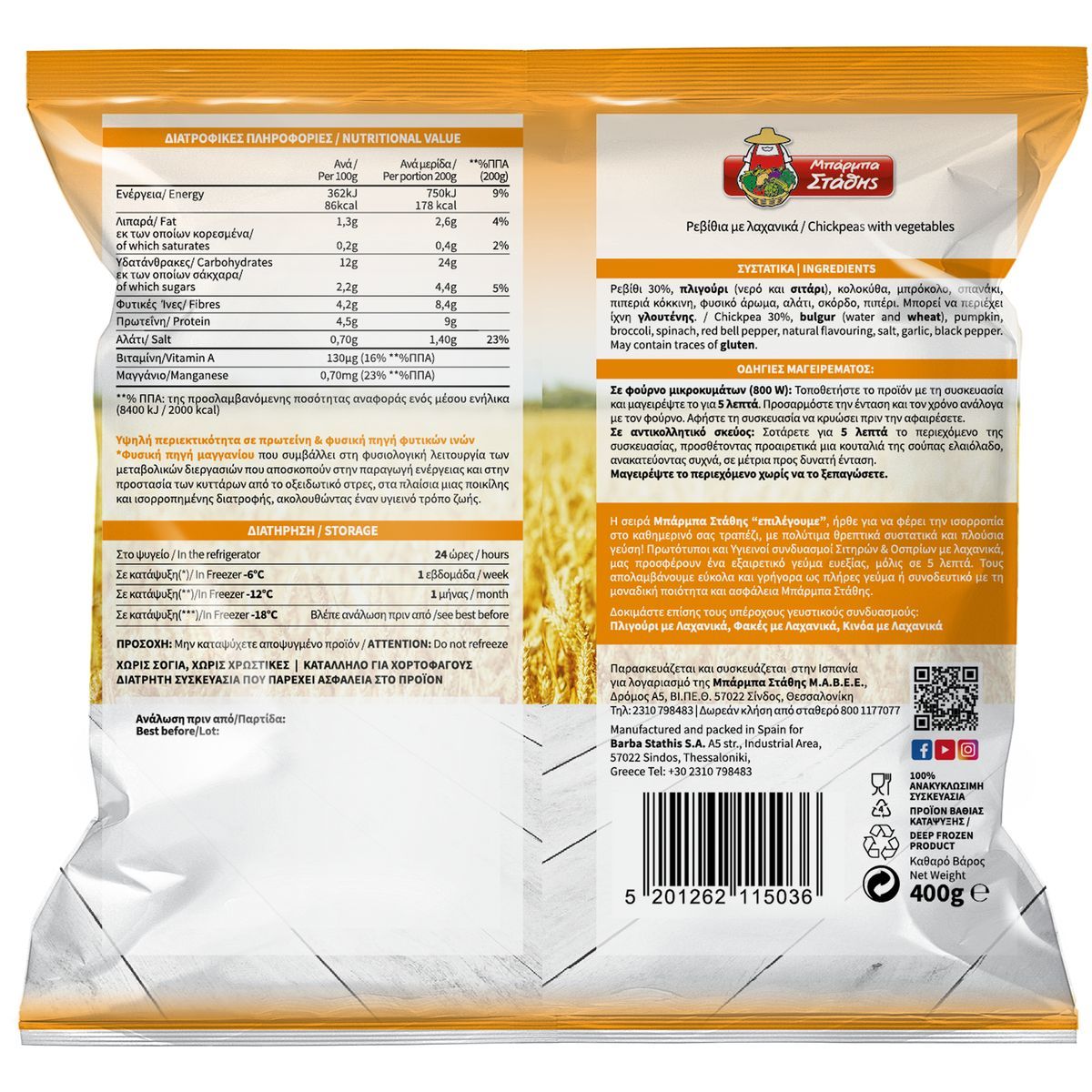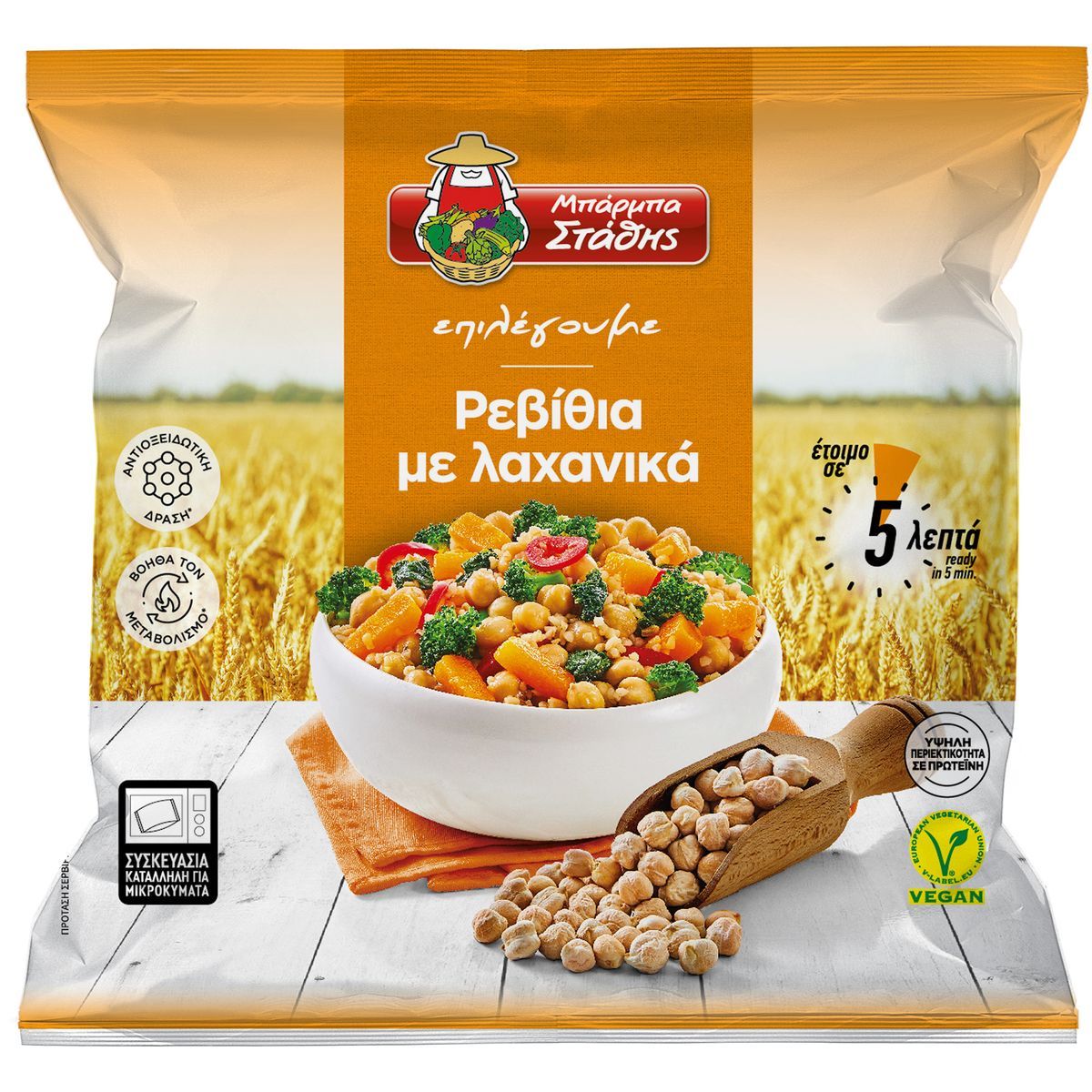Chickpeas with vegetables Uncle Stathis! A Vegan combination of vegetables and legumes. Our chickpeas with vegetables are high in protein and are a natural source of fibre and manganese that contributes to the normal functioning of metabolic processes aimed at producing energy and protecting cells from oxidative stress, as part of a varied and balanced diet!