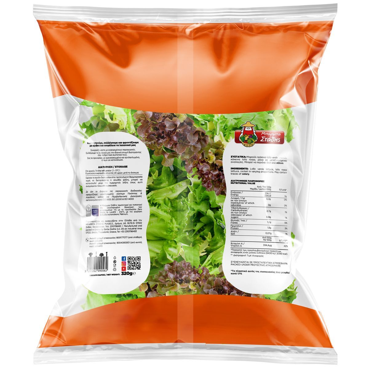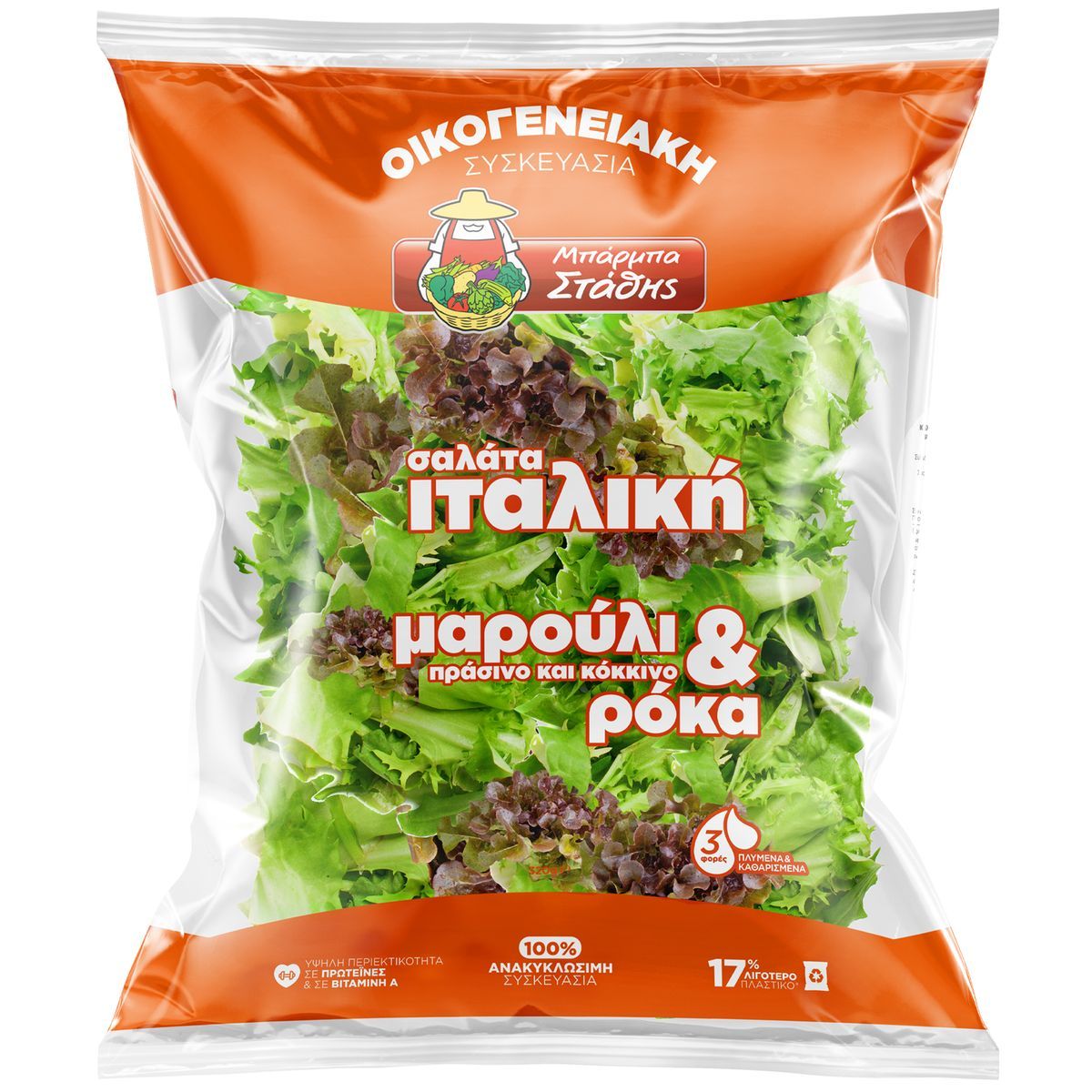 Italian Barba Stathis comes triple-pulped and ready to eat on your plate, bringing the classic taste of freshly cut lollo verde, lollo rosso and rocket lettuce to every meal.It has a high content of vitamin A, which helps maintain normal vision, and protein, which helps maintain muscle mass.