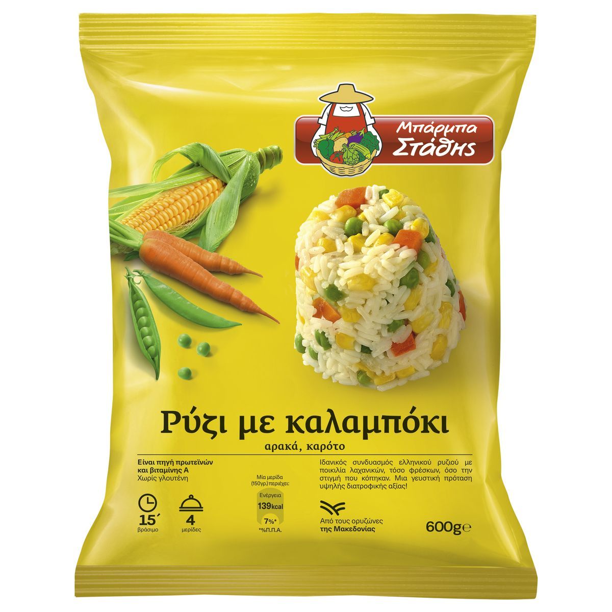 Rice with corn Barba Stathis is produced with Greek rice, cultivated in the rice fields of Macedonia and is a wonderful tasty proposal of high nutritional value. Enjoy an ideal combination of Greek rice with a variety of fine vegetables, as pure and fresh as the moment they were cut, always with the quality and safety of Barba Stathis.Rice with corn is gluten-free and is a source of protein, which helps maintain muscle mass, and vitamin A, which contributes to the normal functioning of the immune system and vision.