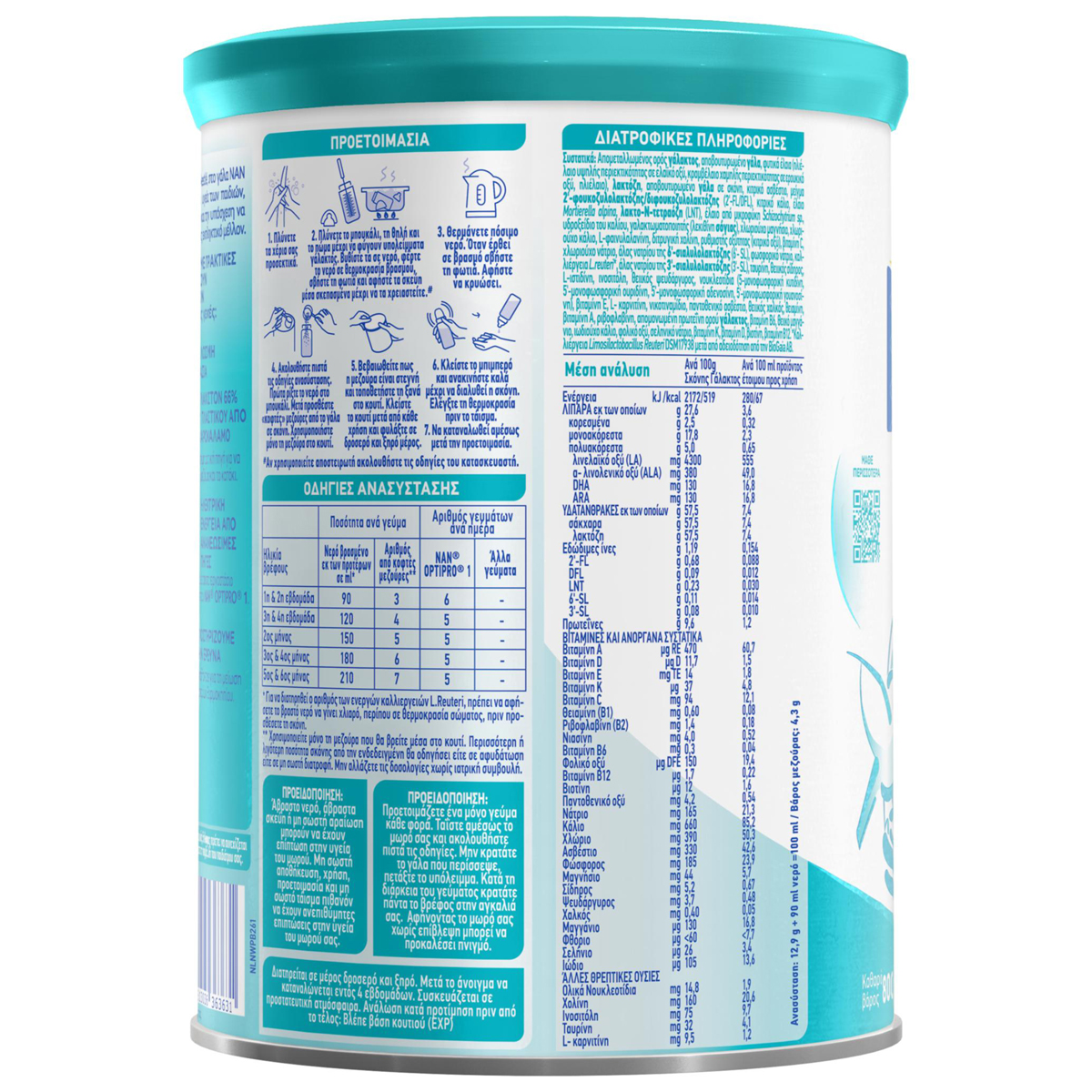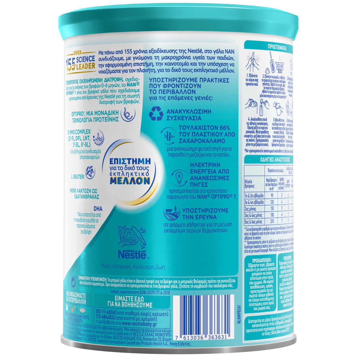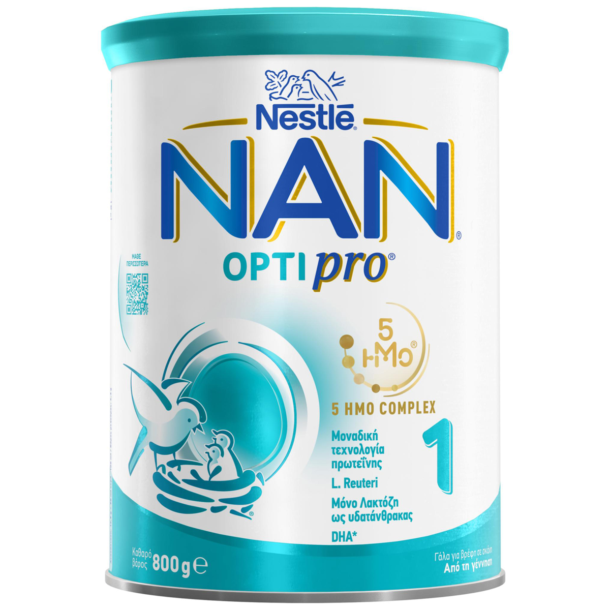 NESTLE NAN OPTIPRO 5 HMO Complex 1 800g. Powdered milk for infants from birth. With over 155 years of Nestle expertise, in NAN milk we combine, with the long-term health of children in mind, applied science, innovation and a promise to care for the planet for their amazing future. PROVIDING COMPLETE NUTRITION, designed for the needs of infants 0-6 months, NAN® OPTIPRO® 1 is an infant milk we designed inspired by Nestle's research on proper infant nutrition. OPTIPRO®, A UNIQUE PROTEIN TECHNOLOGY. 5 HEMO COMPLEX (2'-FL, DFL, LNT, 3'-SL, 6'-SL), a sophisticated combination of oligosaccharides. REUTERI. DHA, *as required by law for all 2nd infant formulae.