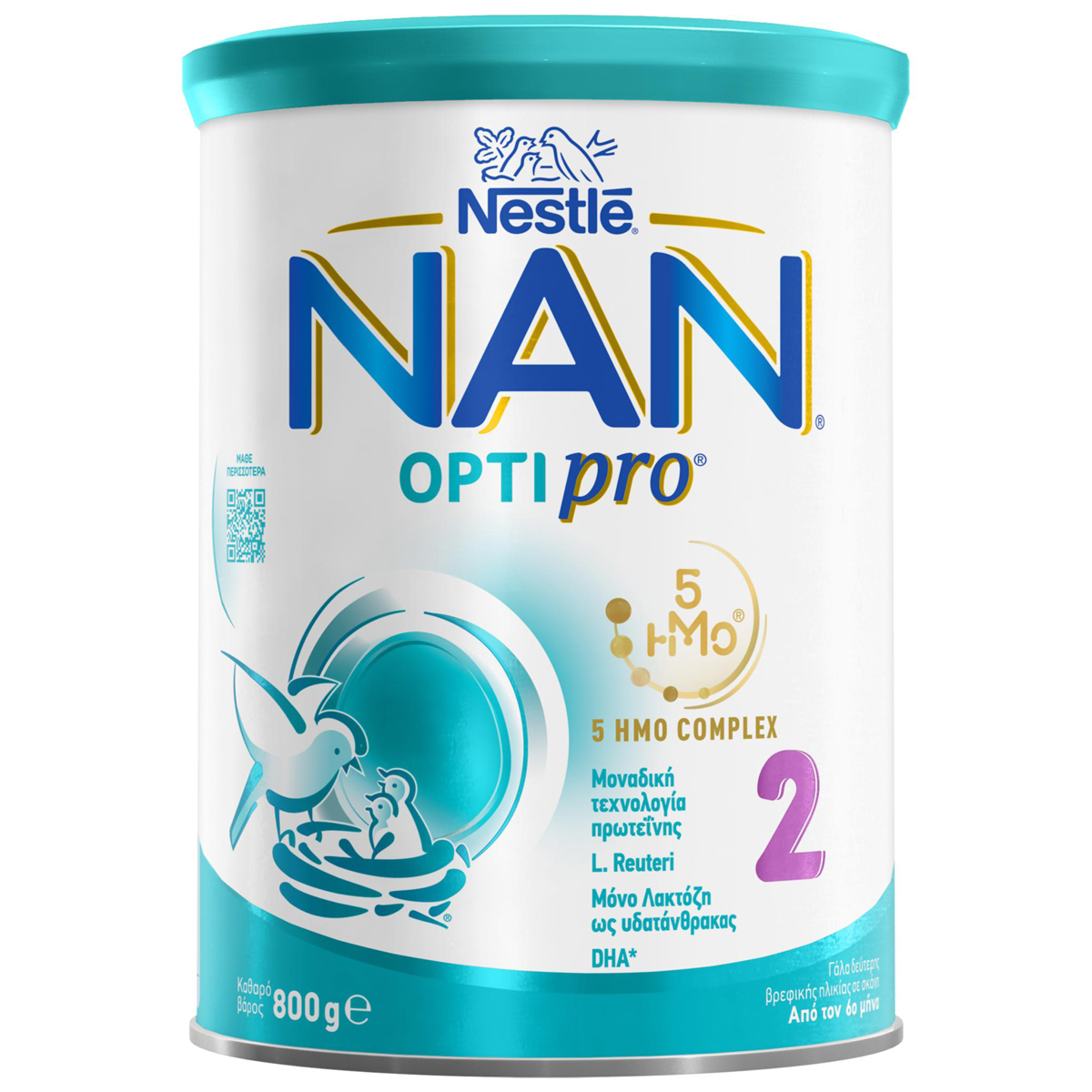NESTLE NAN OPTIPRO 5 HMO Complex 2 800g. Second infant milk powder from the 6th month. With over 155 years of Nestle expertise, in NAN milk we combine, with the long-term health of children in mind, applied science, innovation and a promise to care for the planet for their own amazing future. PROVIDING COMPLETE NUTRITION, designed for the needs of infants 6-12 months, NAN® OPTIPRO® 2 is a second infant milk that we designed inspired by Nestle's research on proper infant nutrition. OPTIPRO®, A UNIQUE PROTEIN TECHNOLOGY. 5 HEMO COMPLEX (2'-FL, DFL, LNT, 3'-SL, 6'-SL), a sophisticated combination of oligosaccharides. L.REUTERI. DHA, *as required by law for all 2nd infant formulae.