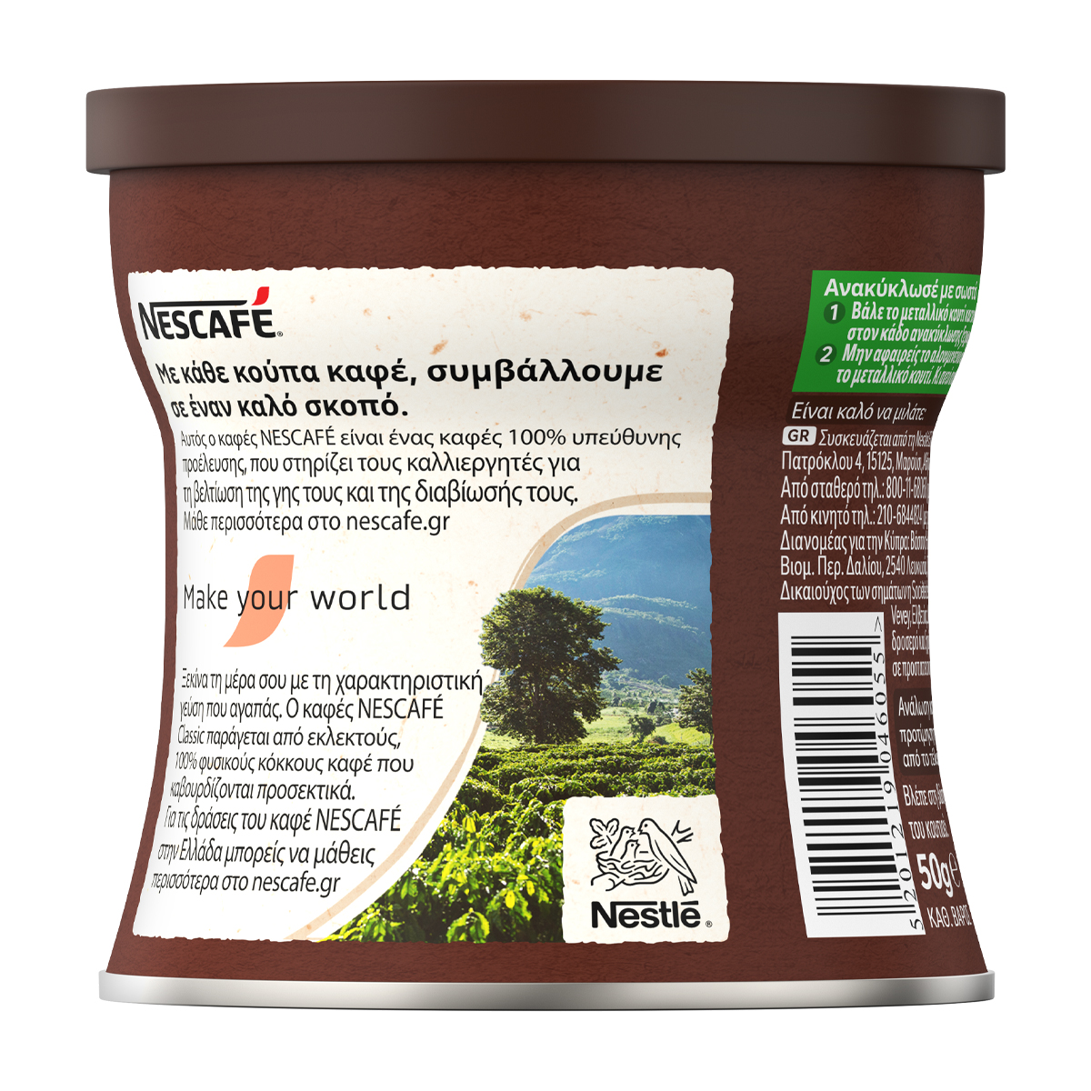 Instant coffee. NESCAFE® CLASSIC coffee is produced from fine Robusta coffee beans that are roasted medium to strong to give them the rich and delicious taste and aroma you know and love. The specially designed metal packaging keeps NESCAFE® CLASSIC tasting great down to the last drop and is recyclable.