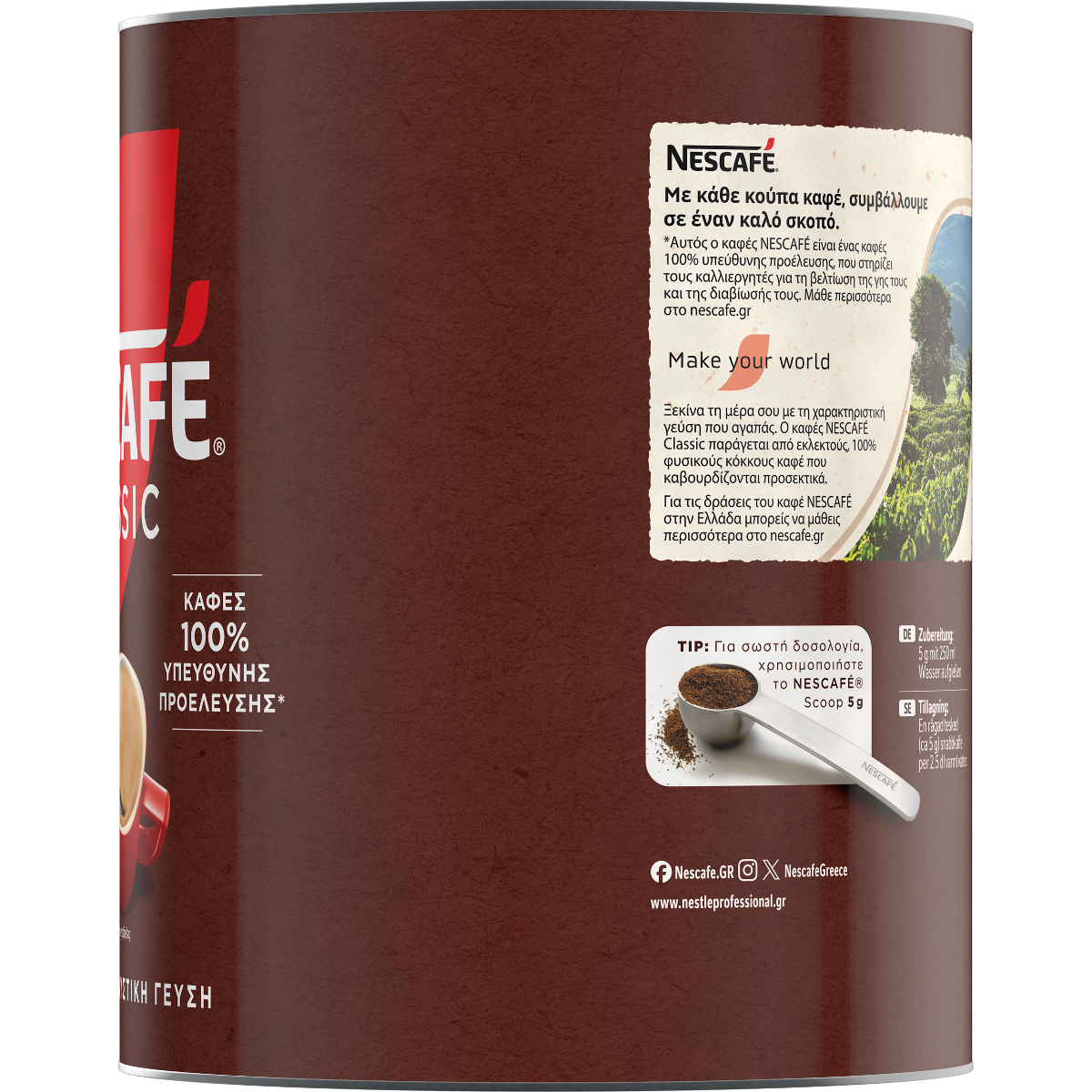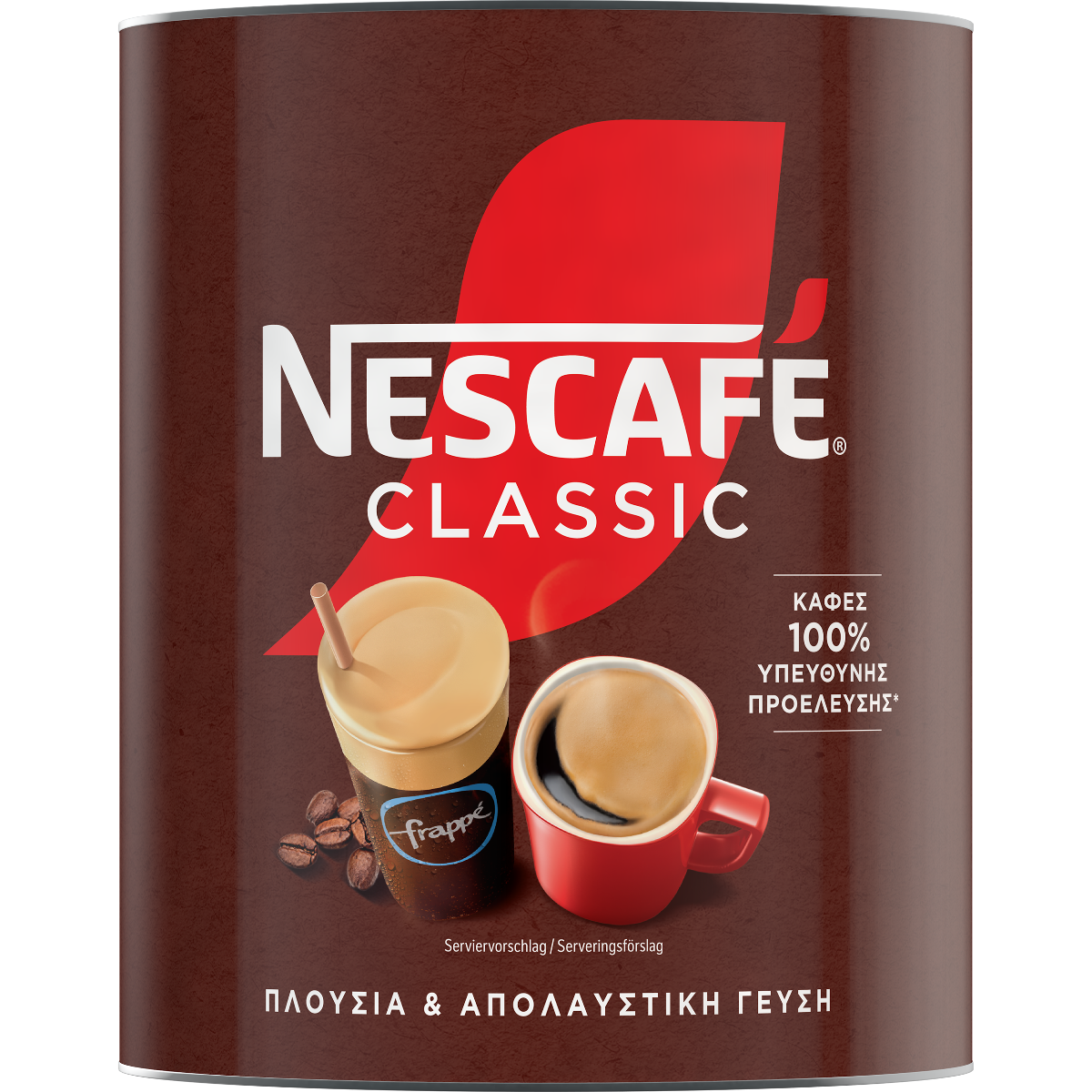 Every sip of NESCAFE CLASSIC hides the passion of the coffee experts who have ensured for you and your customers the authentic taste and intense aroma. Made from selected coffee beans that are roasted, ground and filtered naturally with water , it is a 100% natural product.