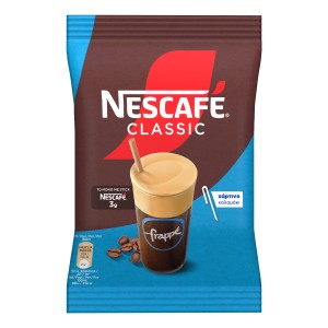 Black or sweet, always cold and delicious, NESCAFE® FRAPPE coffee with its rich foam and full-bodied taste stimulates our mood, awakens our senses and is an integral part of our company and the moments we share. Your favourite NESCAFE® frappe coffee, always iced with the incomparable taste you know and love, accompanies you every moment, wherever you are. The stages of creating a NESCAFE® frappe coffee and the unique way each one is made make it special. It is the coffee that is always with you, wherever you are. That you make it exactly the way you want it, so you enjoy it even more. With Nescafe® stick 3g. Excellent blend of medium to strong roasted Robusta coffee beans. Contains the ideal amount of coffee for a delicious NESCAFE® FRAPPE.